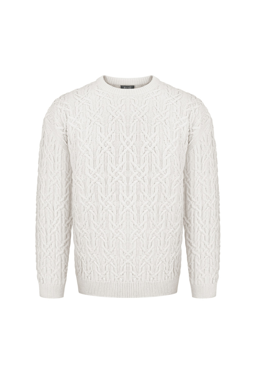 Чоловічий светр з аранами молочний
