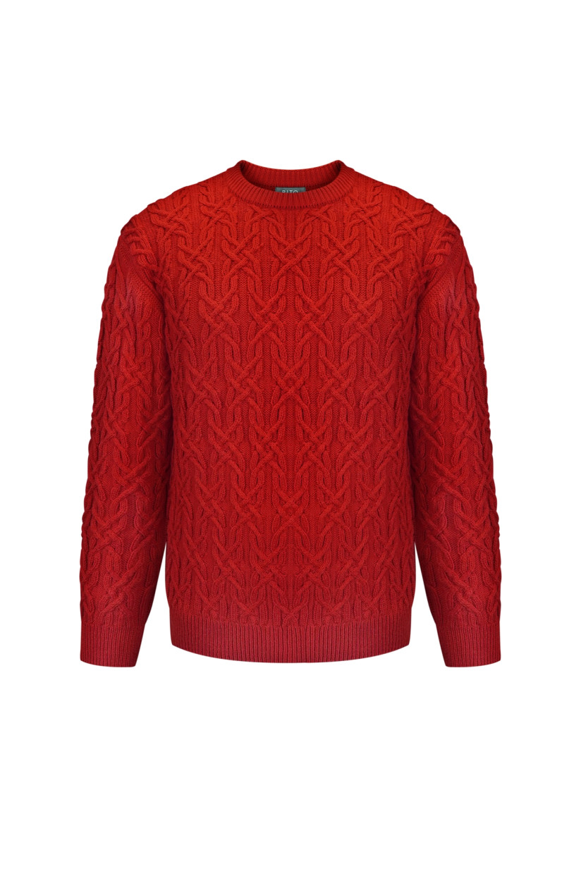 Чоловічий светр з аранами червоний