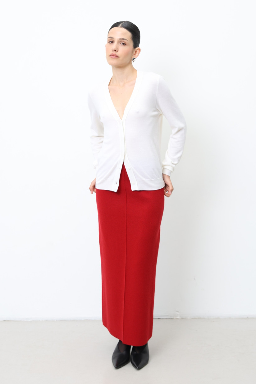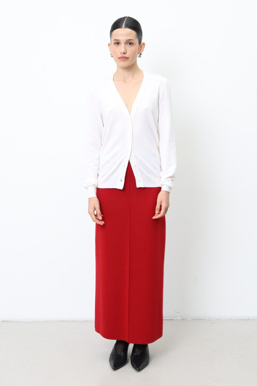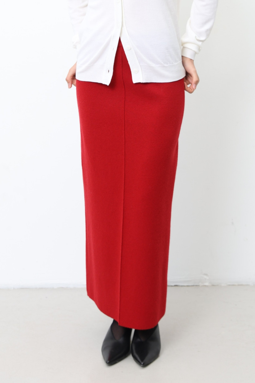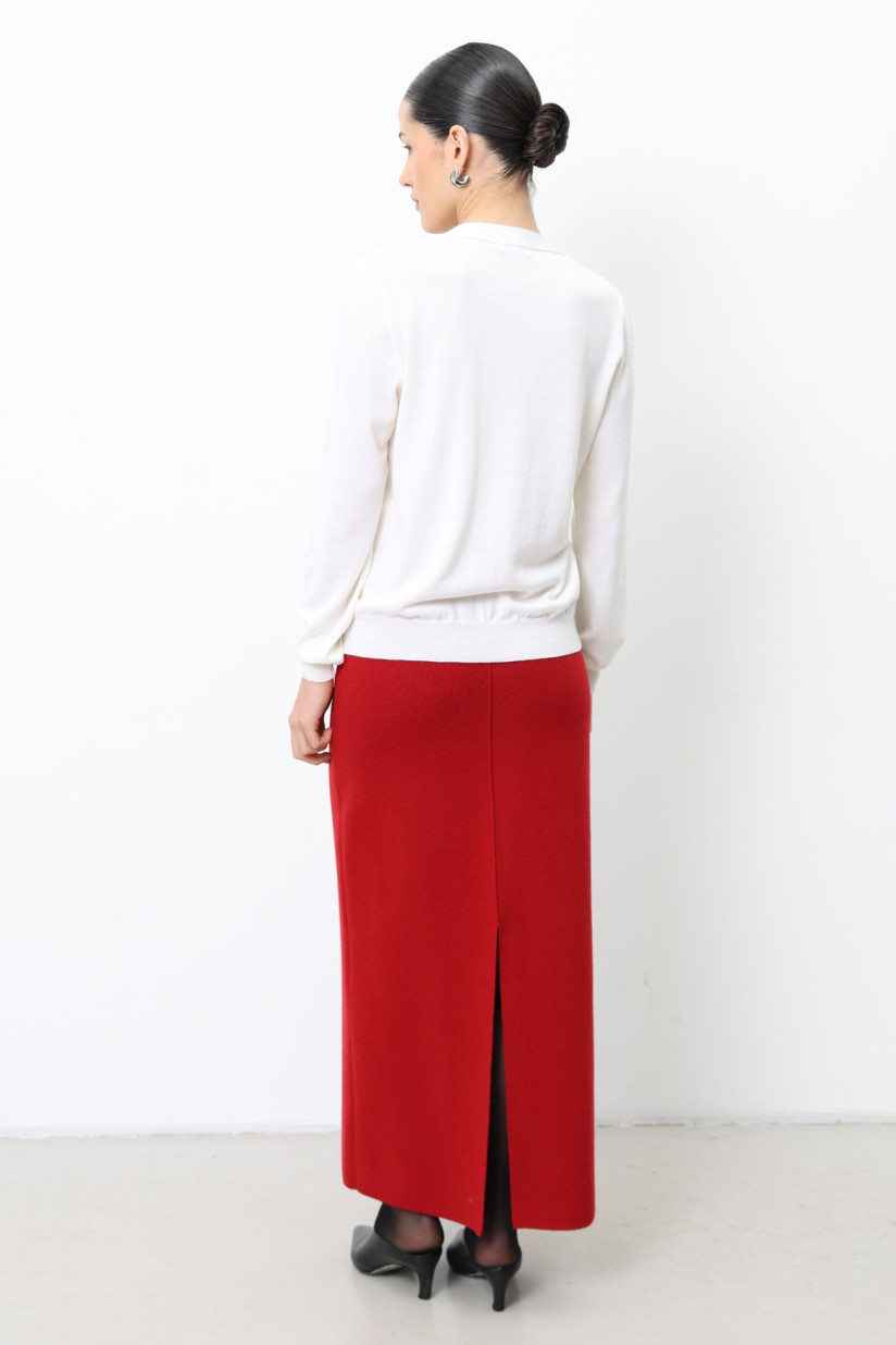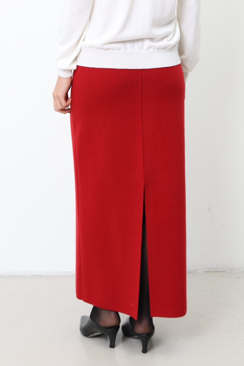 Довга спідниця із вовни ягнят темно-червона