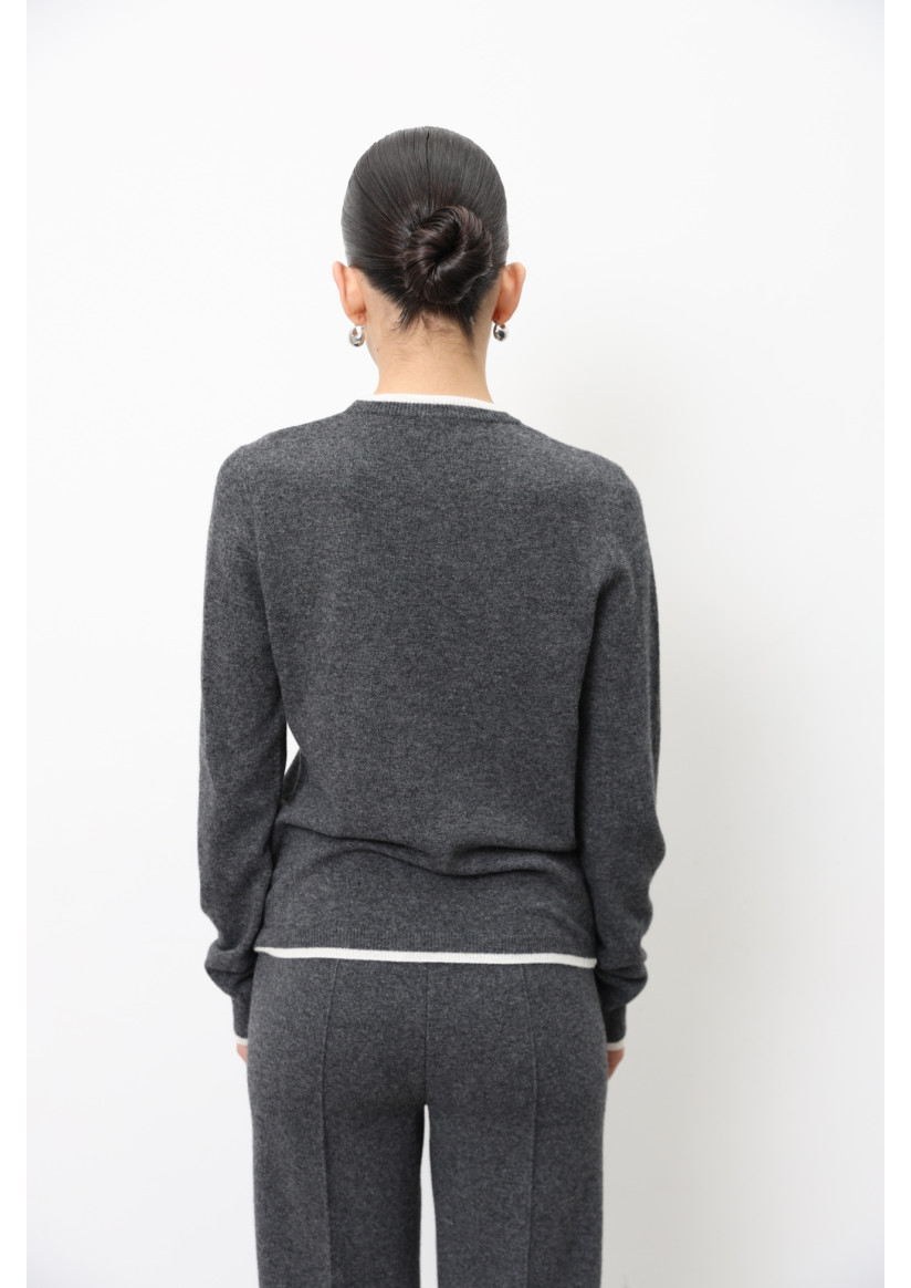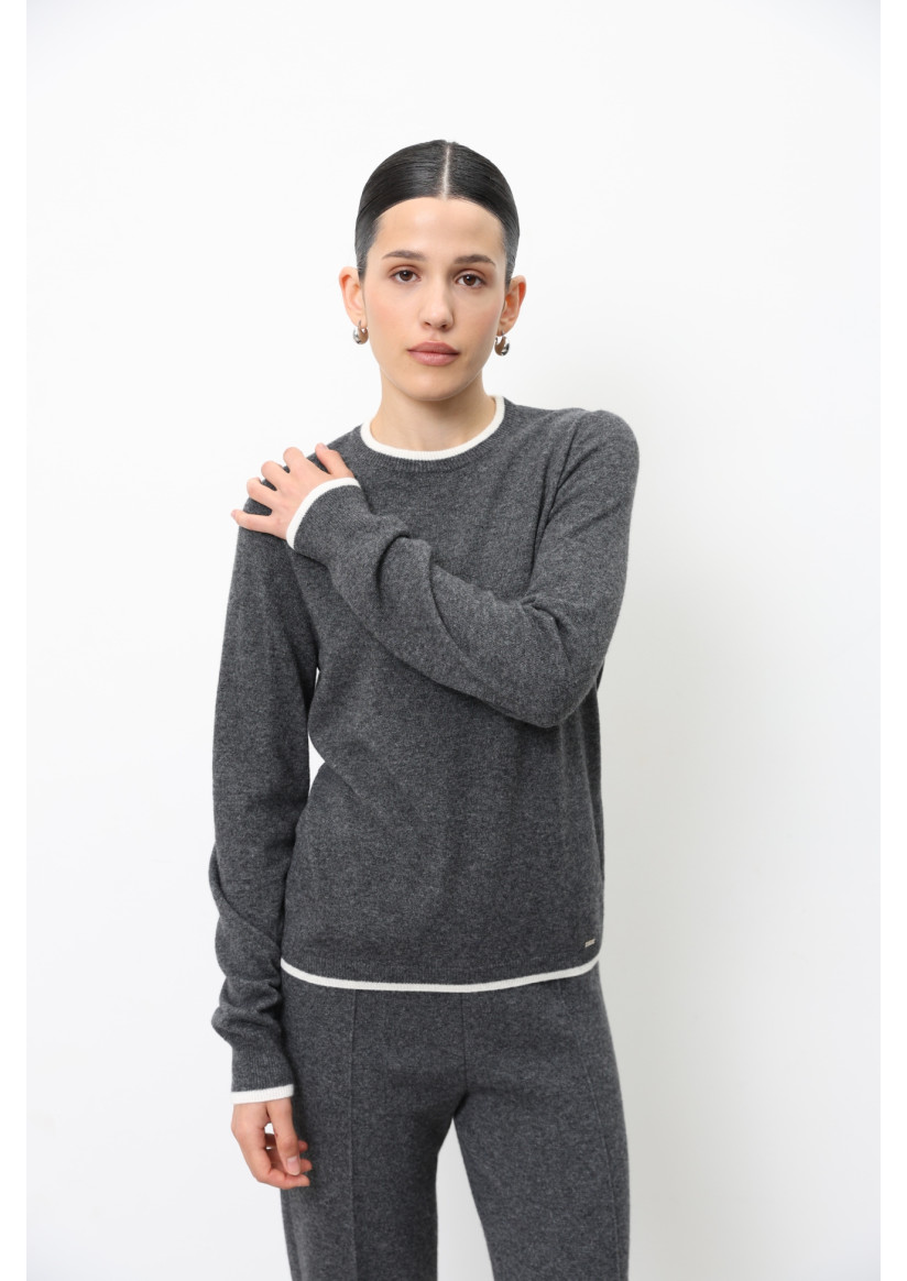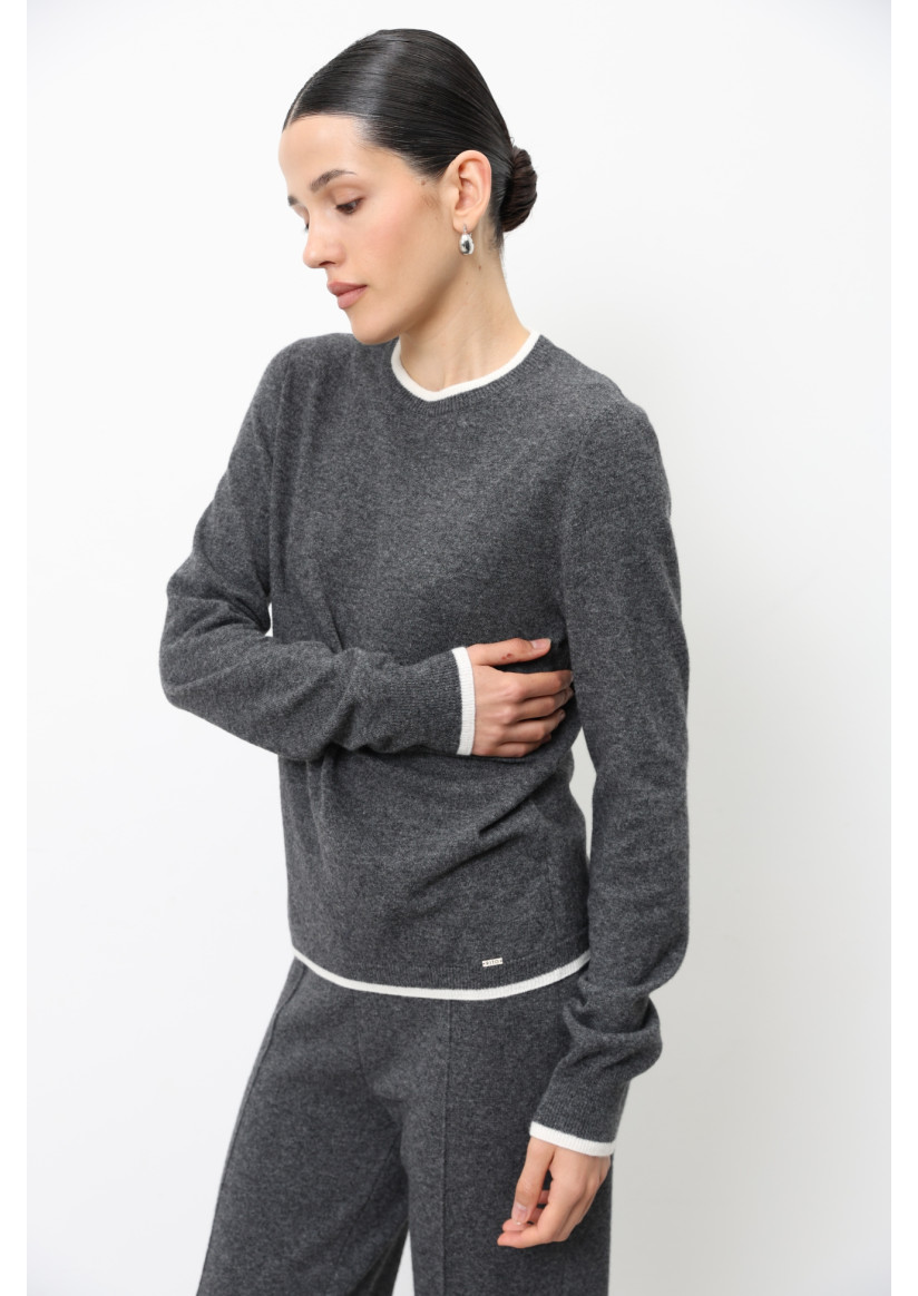 Джемпер з вовни ягнят з довгим рукавом темно-сірий-молочний
