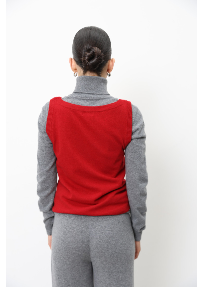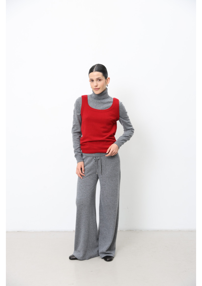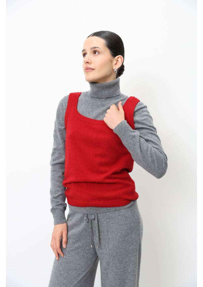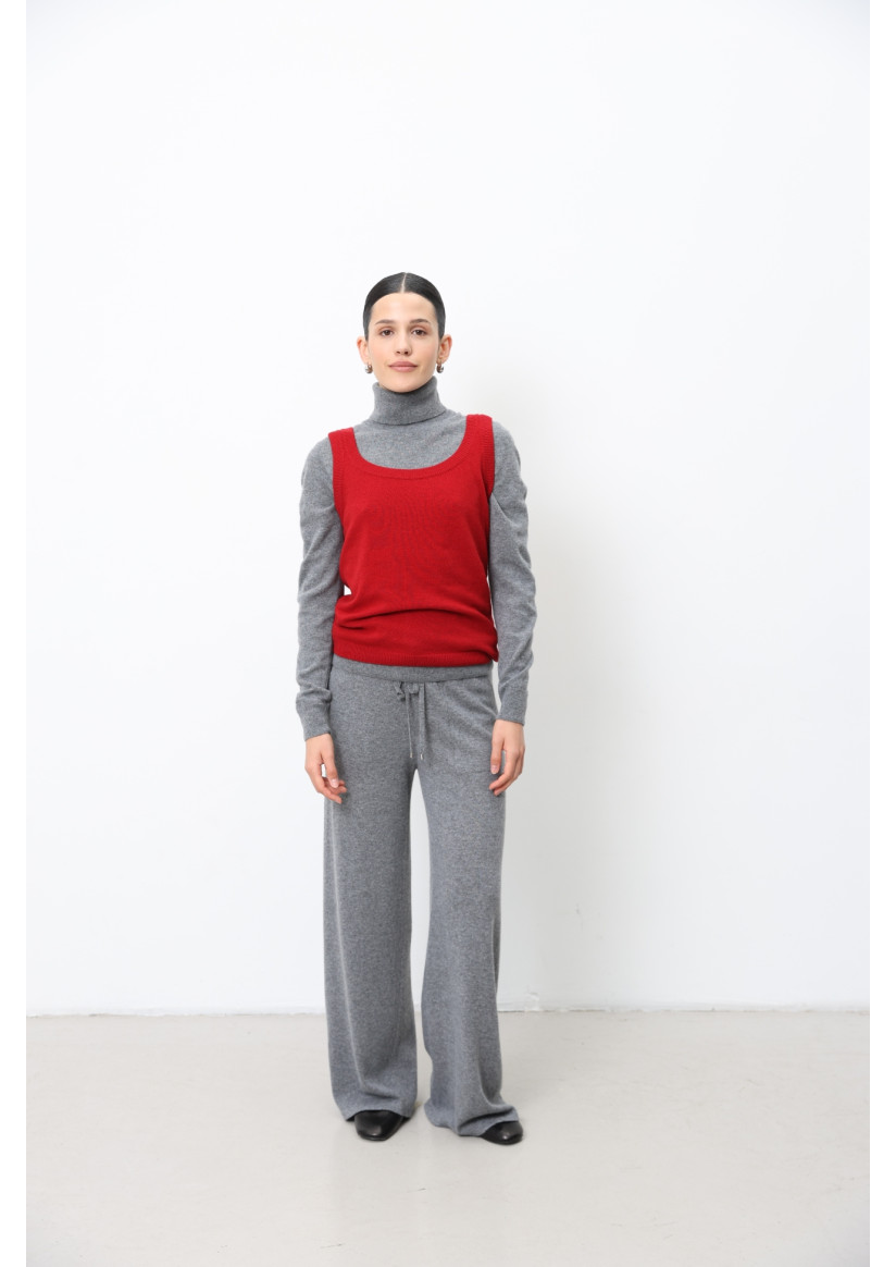 Soft lambswool knitted top with a round neckline. Designed in a straight silhouette with a hip-length cut. Finished with ribbed neckline, straps, armholes, and hem. Versatile design — wear it on its own as a top or layered as a vest.