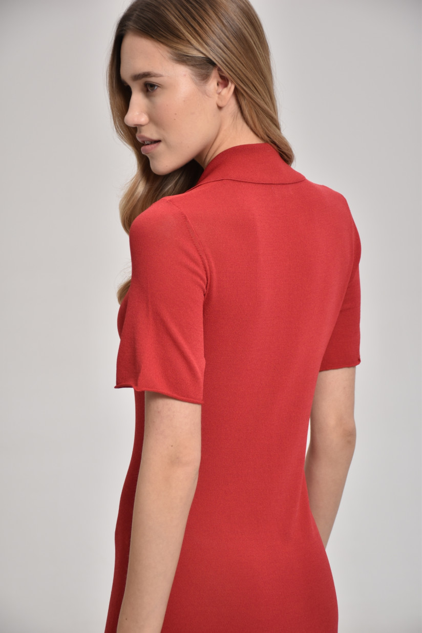 A long dress with a turn-down collar made of soft silky viscose is the perfect choice for those looking for high-quality, comfortable and stylish knitwear. The dress has a pleasant texture to the touch and provides comfort throughout the day.