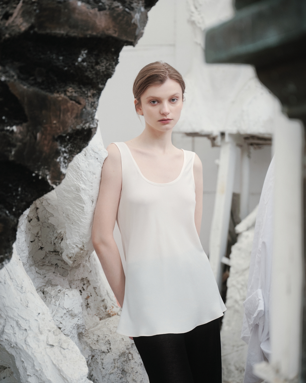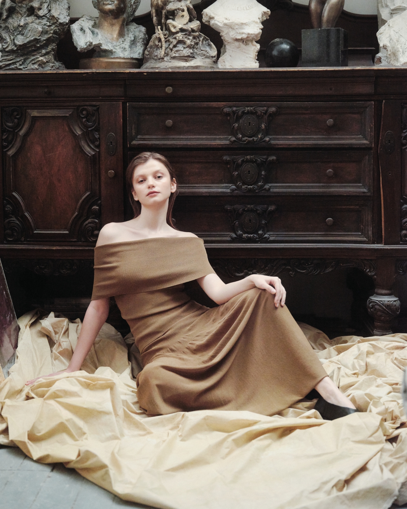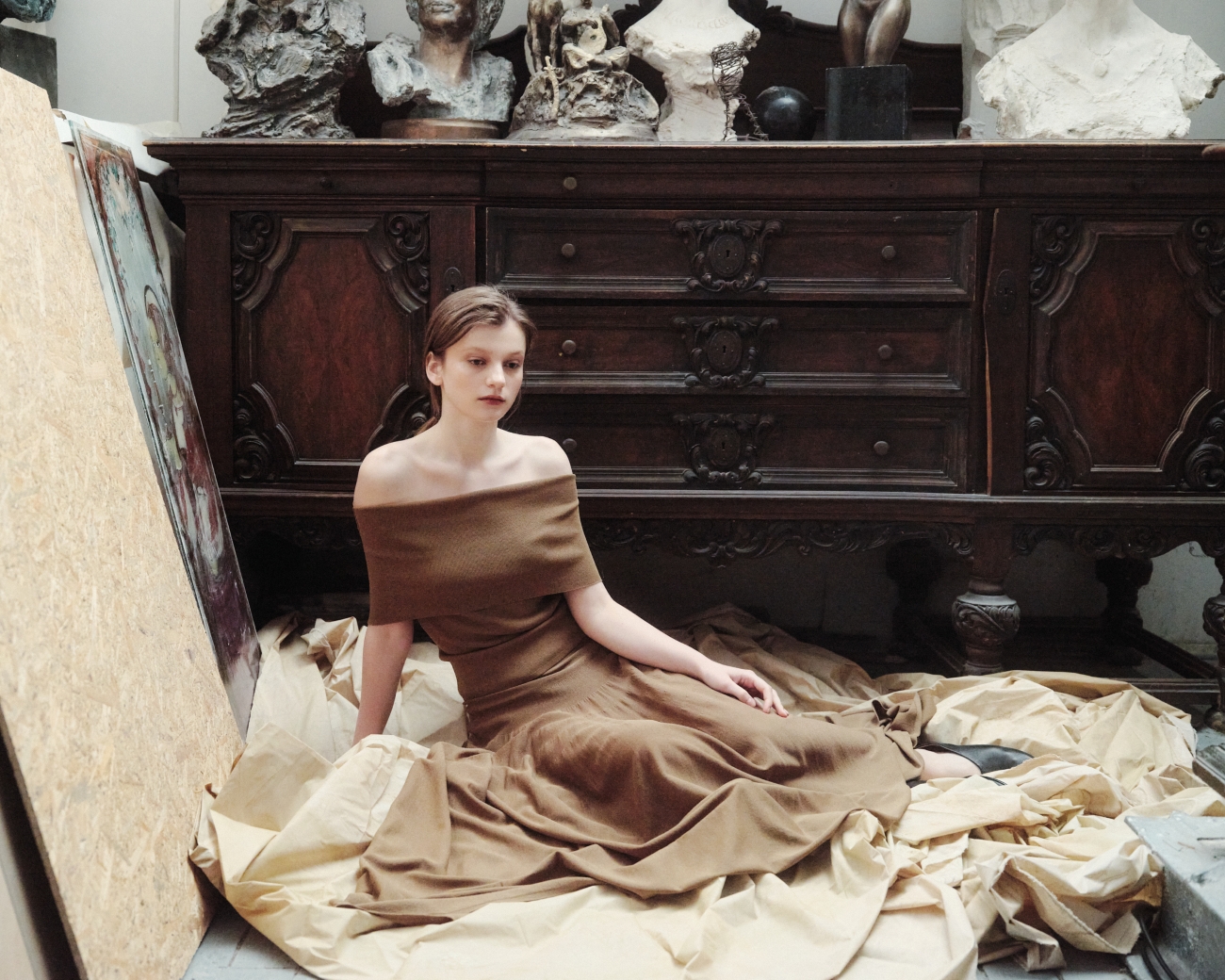 RITO Spring/Summer 2025 — a study of natural movement and purity of form. Knitwear as a living texture that flows with the rhythm of the body and space. Soft volumes, calm tones, and the quiet presence of light define the collection.