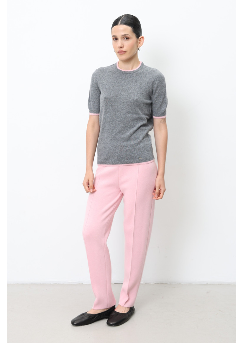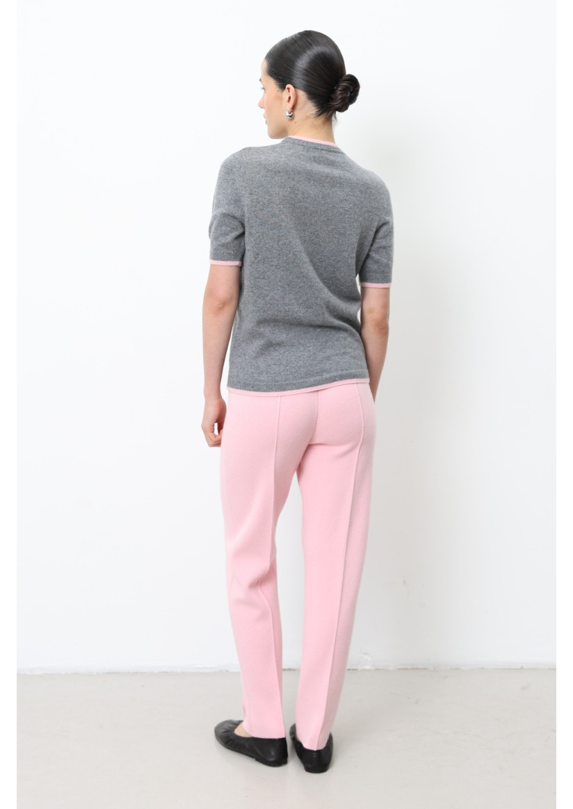 An updated carry-over style of knitted pants made of lambswool with a slightly narrowed cut. Elastic waistband, stitched seam in front and back of the pants. Woolen pants are the basis of the autumn-winter wardrobe. Perfect fit, warm yarn, basic color solutions. Regardless of what you wear - a voluminous men's shirt and pumps, or a jacket and ankle boots, or a T-shirt, a knitted cardigan, and massive sneakers - your look will definitely be stylish.