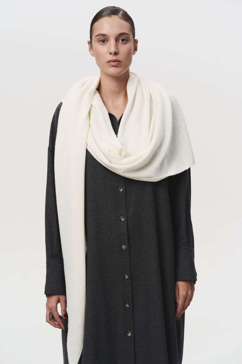 Шарф-косинку з мішаної вовни ягняти RITO випускає в цьому сезоні в однотонному варіанті. Виберіть свій колір, вільно зав'яжіть навколо шиї або просто накиньте на плечі.