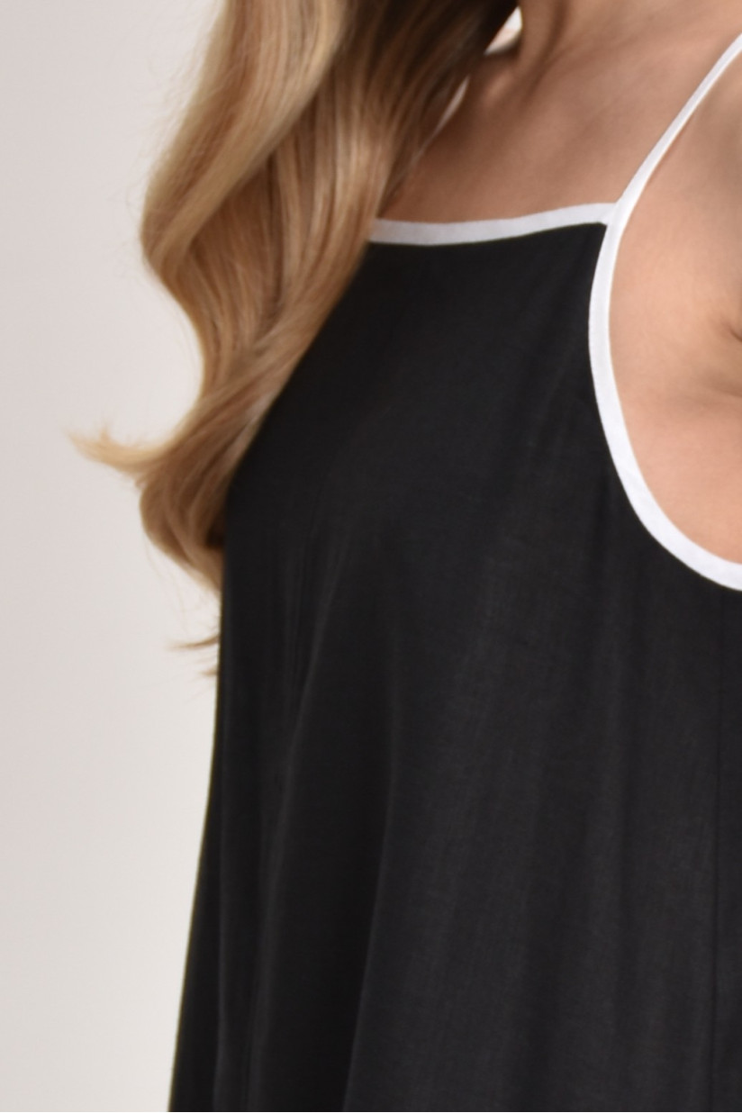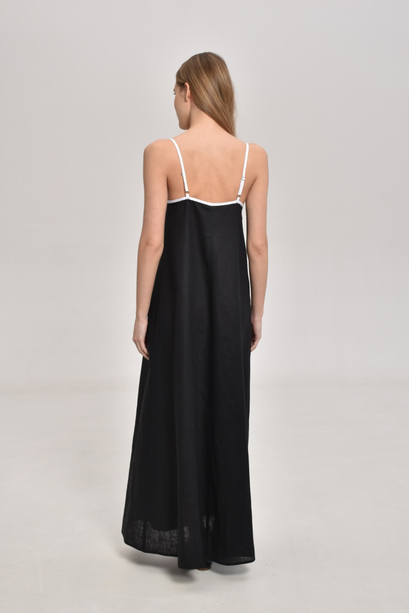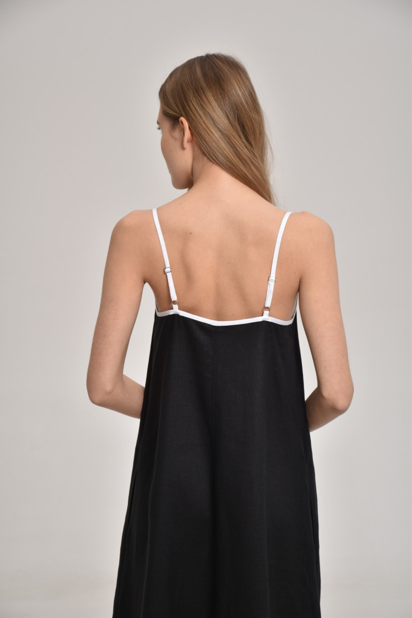 Лляна сукня з контрастними бретелями чорна