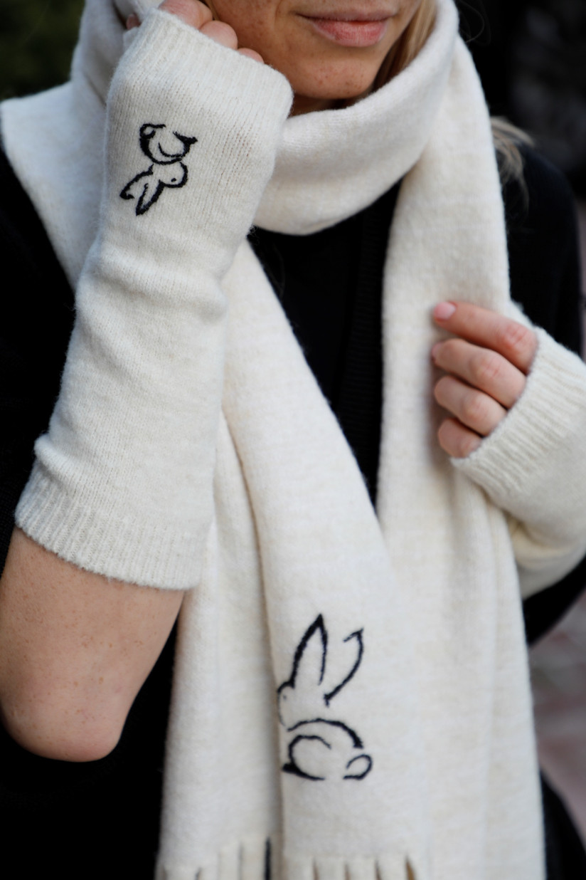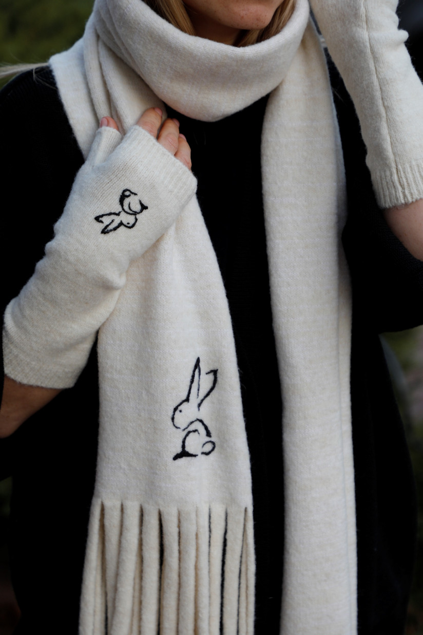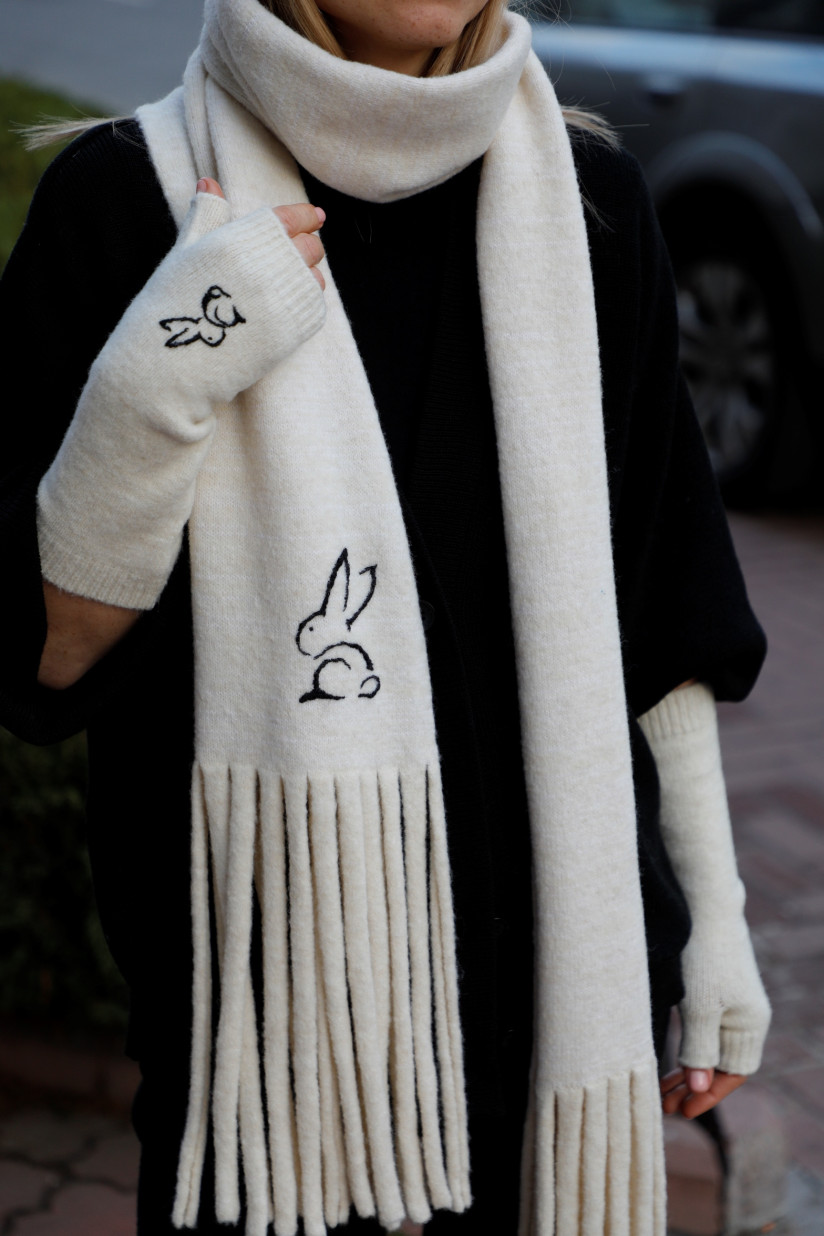 М'який шарф з вишивкою ручної роботи "Кролик" молочний