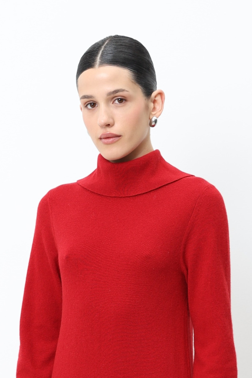 Міді-сукня з вовни ягнят темно-червона