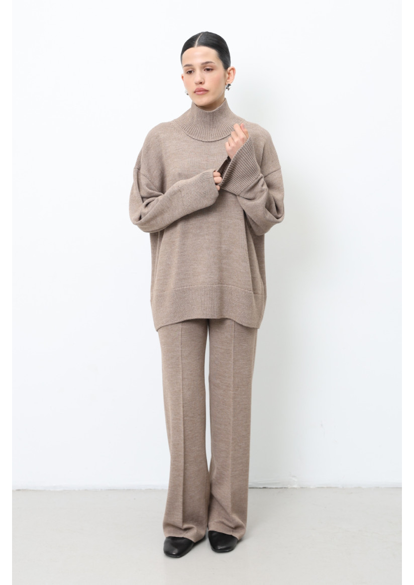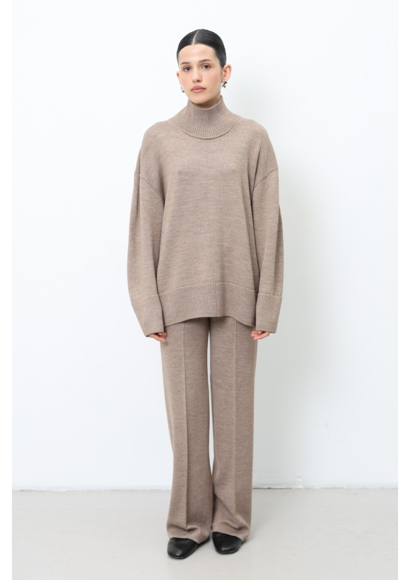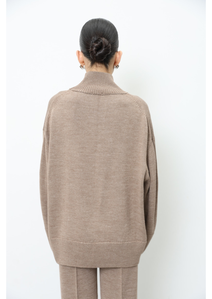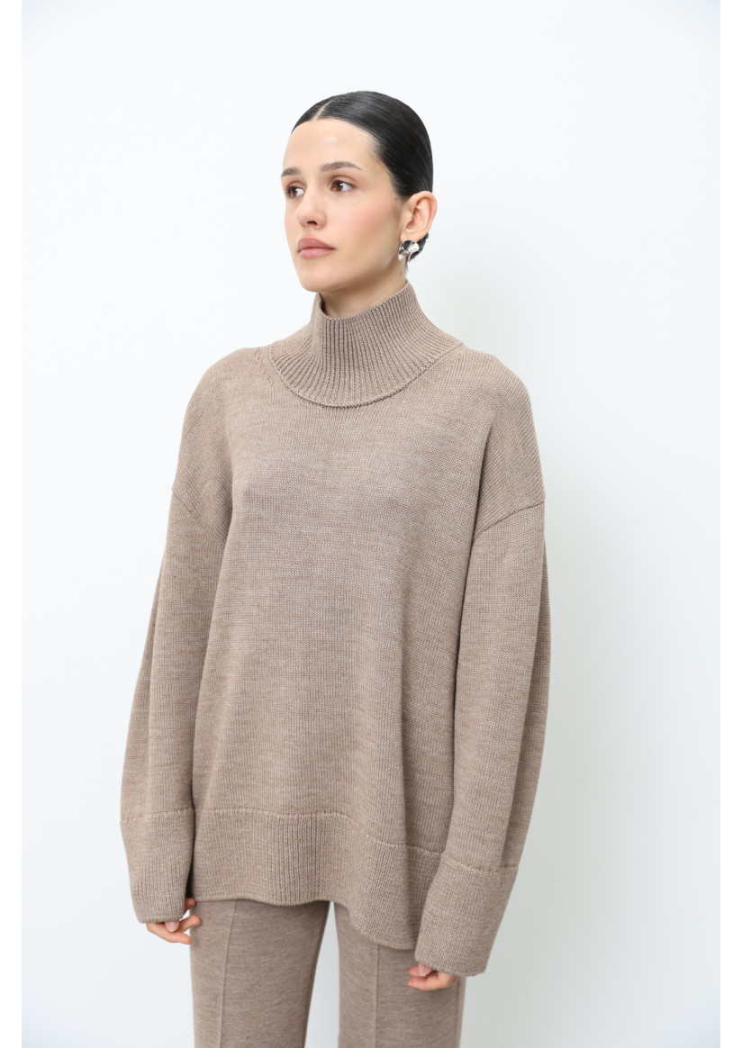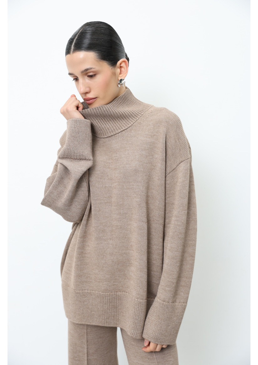Об'ємний светр з вовни темно-бежевий