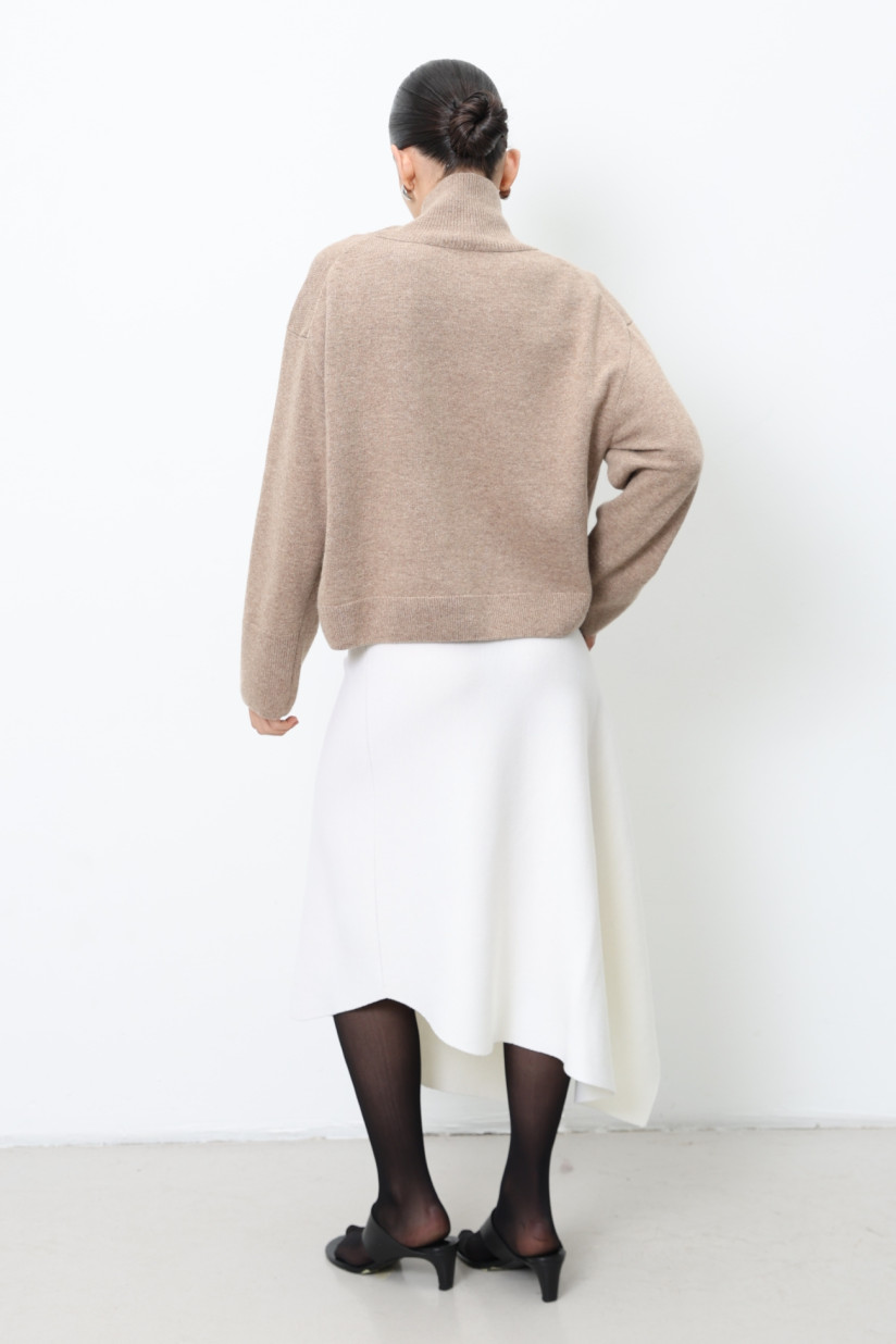 Об’ємний укорочений джемпер з вовни ягнят темно-бежевий
