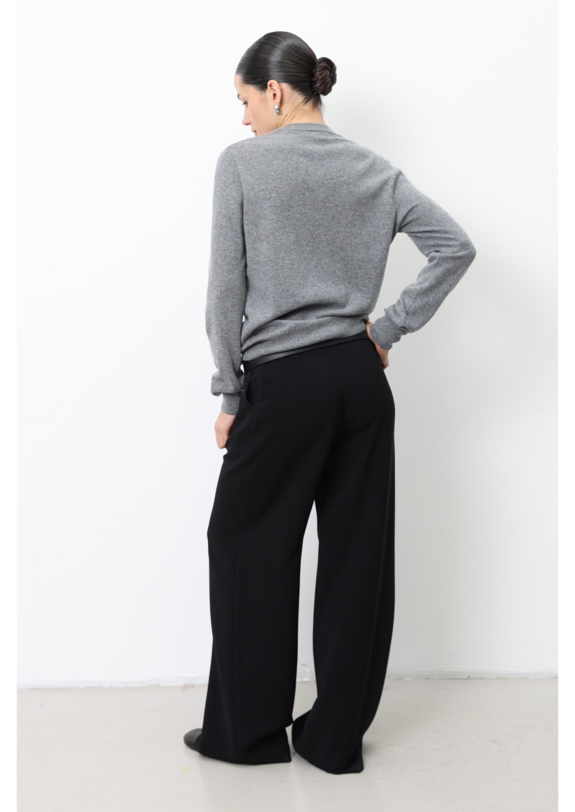 Джемпер из мягкой шерсти ягнят в гладком трикотажном переплетении. Прямой силуэт и длина до линии бедер. Круглый вырез горловины с мягкой эластичной обработкой, длинные втачные рукава длиной до локтя с эластичными манжетами. Низ изделия выполнен резинкой и дополнен небольшой металлической фурнитурой с логотипом бренда. Лаконичный дизайн, сочетающий комфорт и современную выразительность.