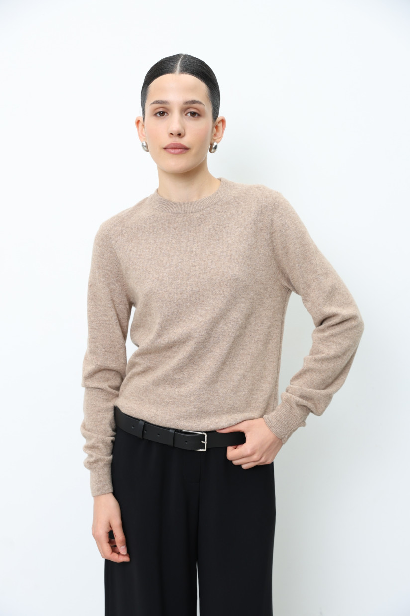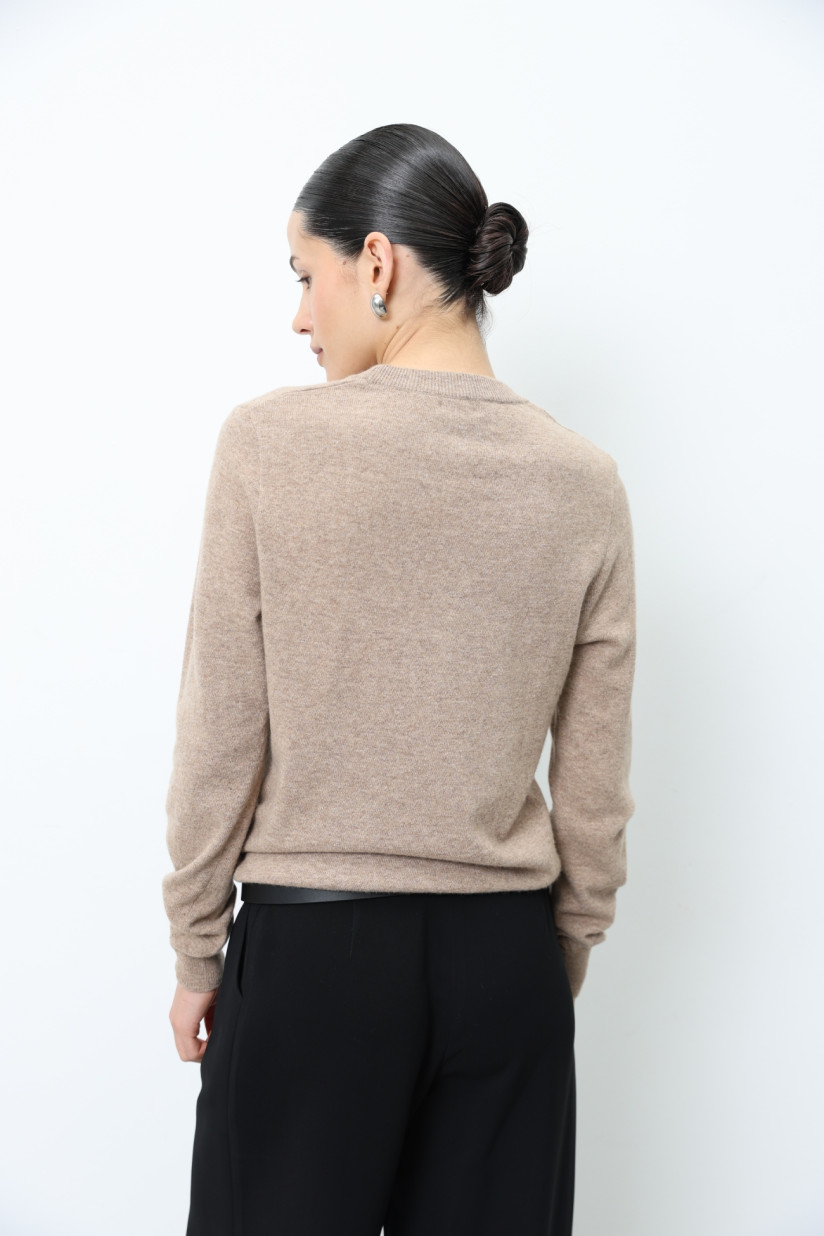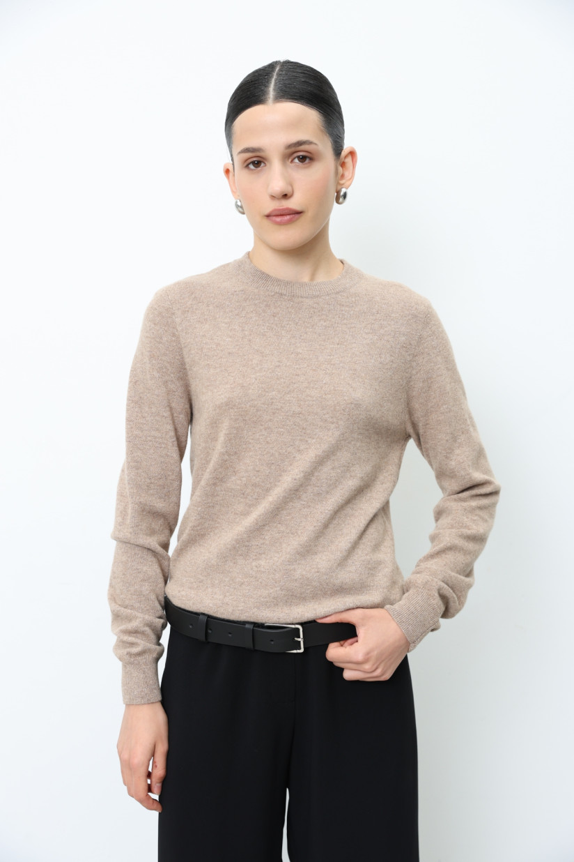 Базовый джемпер из шерсти ягнят темно-бежевый