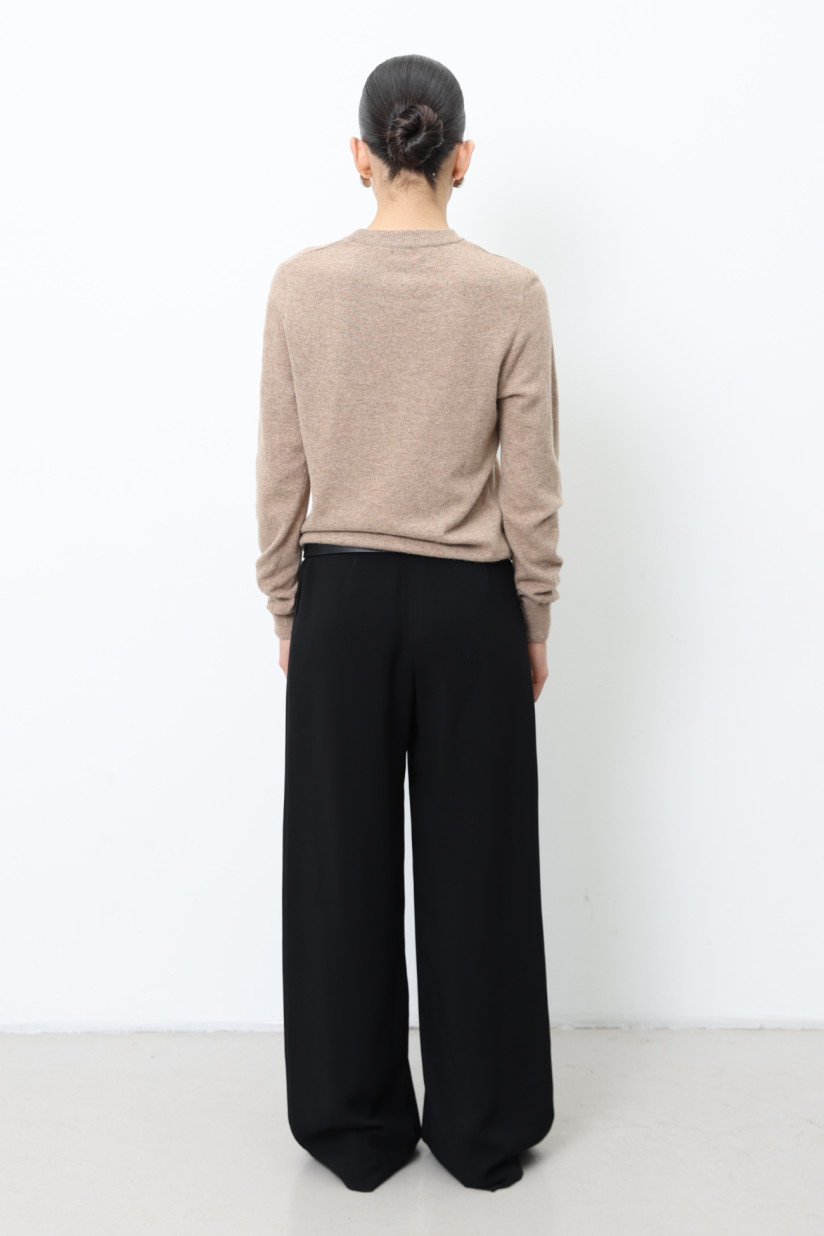 Джемпер из мягкой шерсти ягнят в гладком трикотажном переплетении. Прямой силуэт и длина до линии бедер. Круглый вырез горловины с мягкой эластичной обработкой, длинные втачные рукава длиной до локтя с эластичными манжетами. Низ изделия выполнен резинкой и дополнен небольшой металлической фурнитурой с логотипом бренда. Лаконичный дизайн, сочетающий комфорт и современную выразительность.