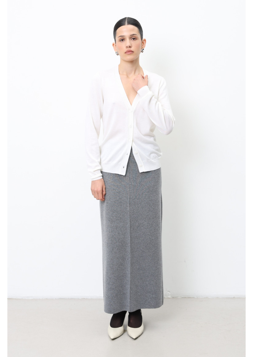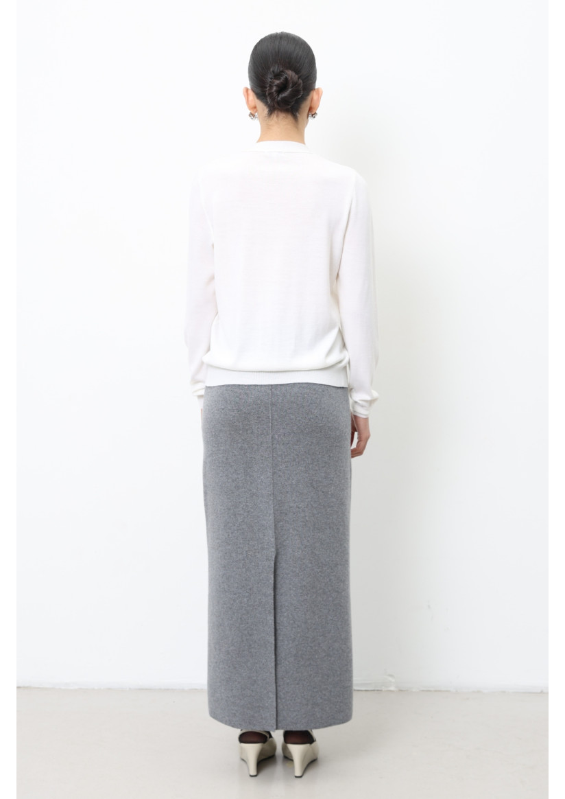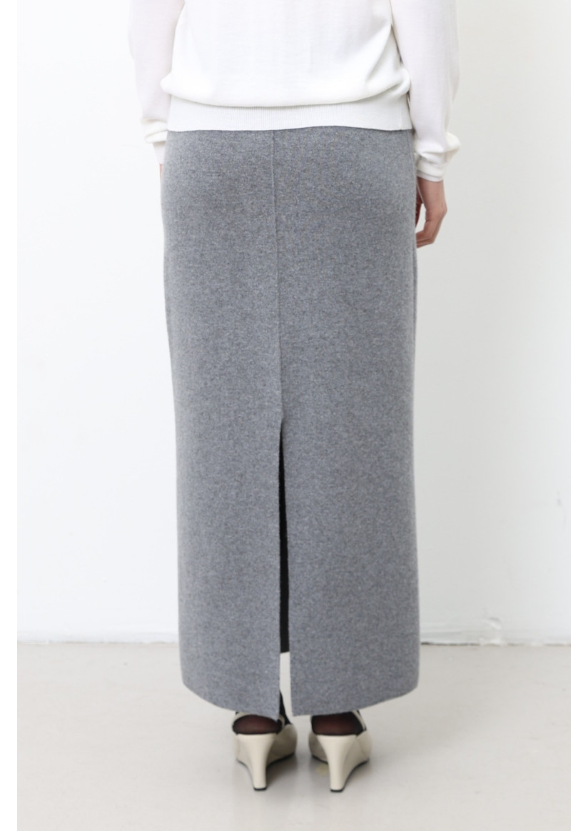 Трикотажная макси-юбка прямого кроя из шерсти ягнёнка плотного гладкого переплетения. Модель украшена поясом на эластичной резинке и декоративными центральными швами спереди и сзади, завершающимися высоким разрезом на спинке. Элегантный и современный силуэт делает юбку универсальным выбором для стильных образов.