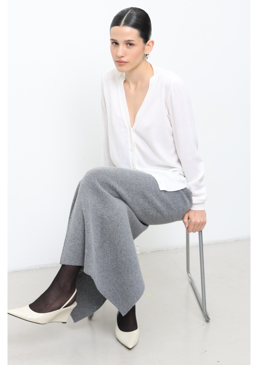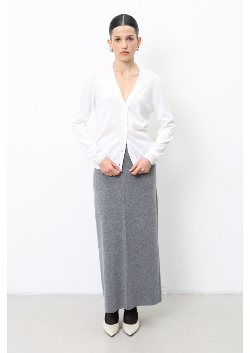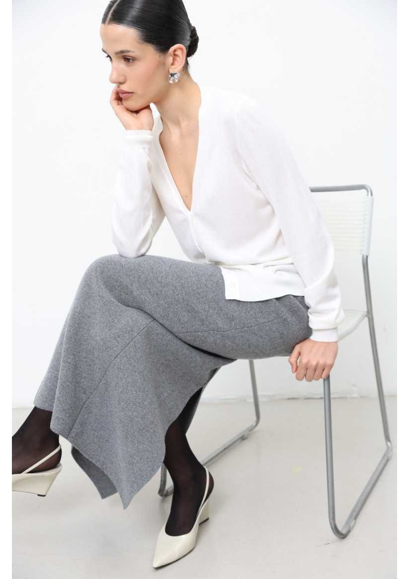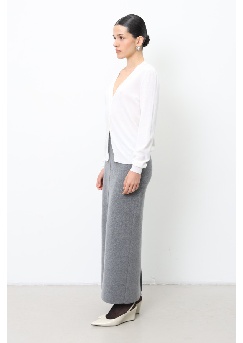 Трикотажная макси-юбка прямого кроя из шерсти ягнёнка плотного гладкого переплетения. Модель украшена поясом на эластичной резинке и декоративными центральными швами спереди и сзади, завершающимися высоким разрезом на спинке. Элегантный и современный силуэт делает юбку универсальным выбором для стильных образов.