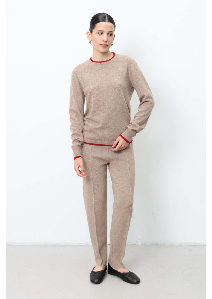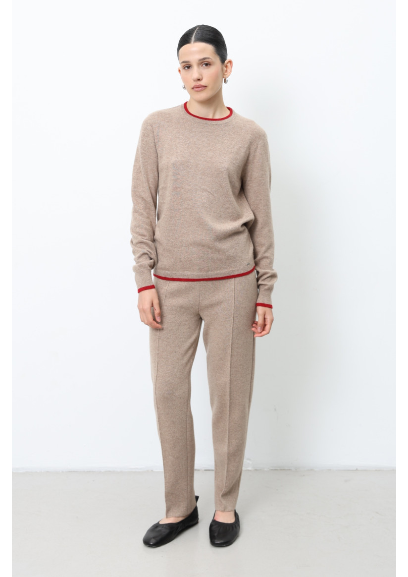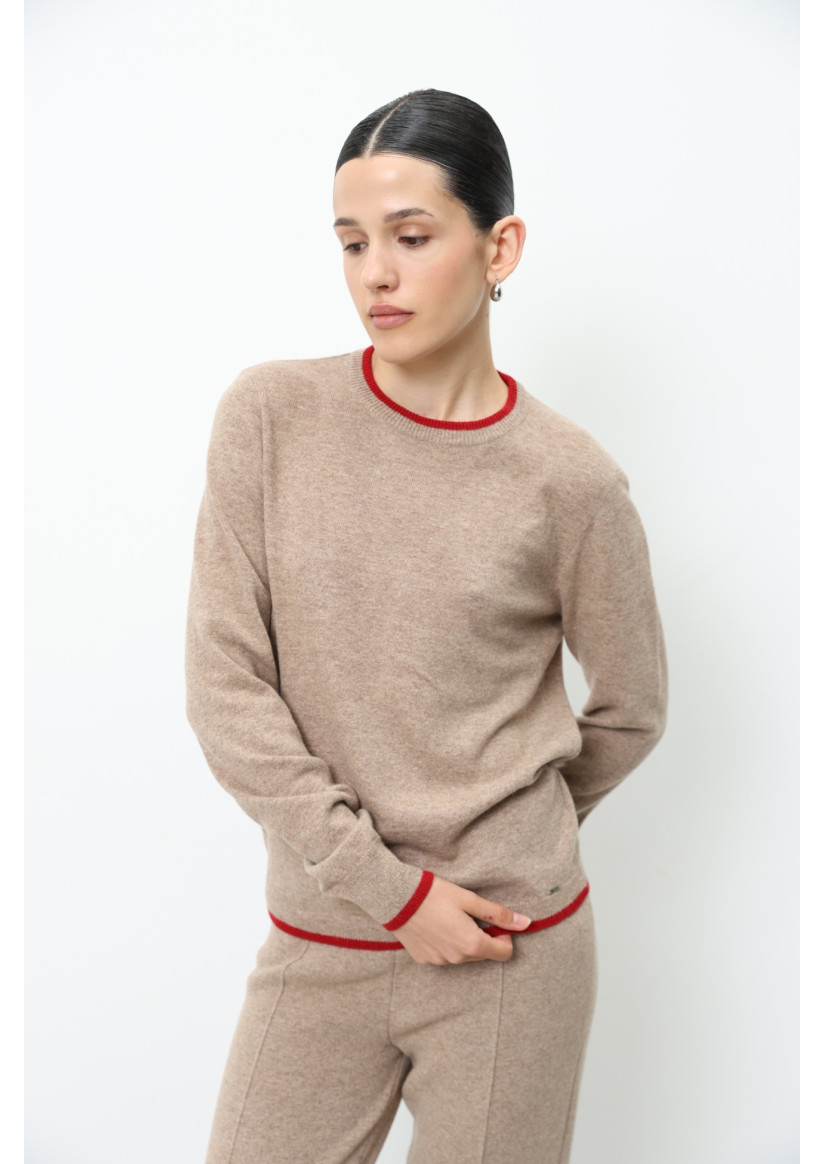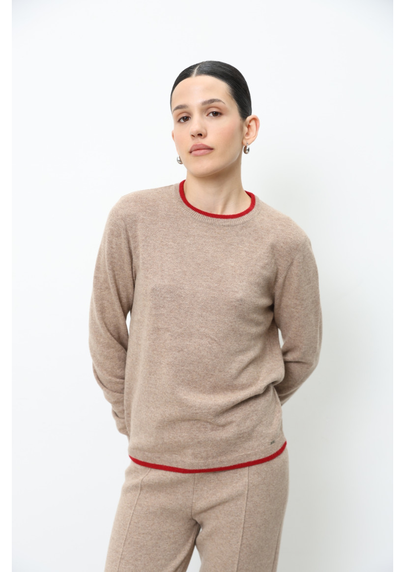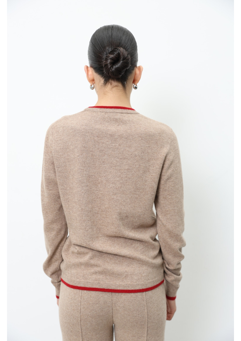 Джемпер из шерсти ягнят с длинным рукавом бежево-красный
