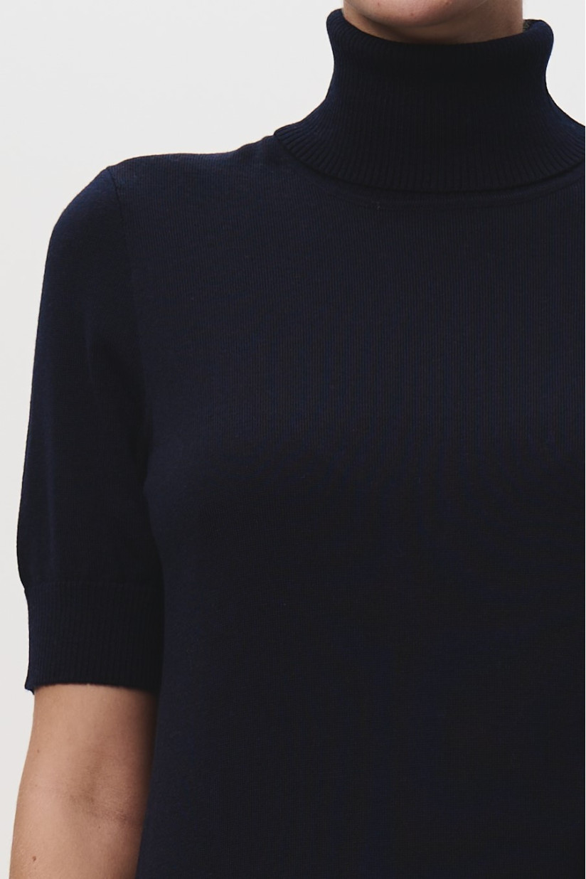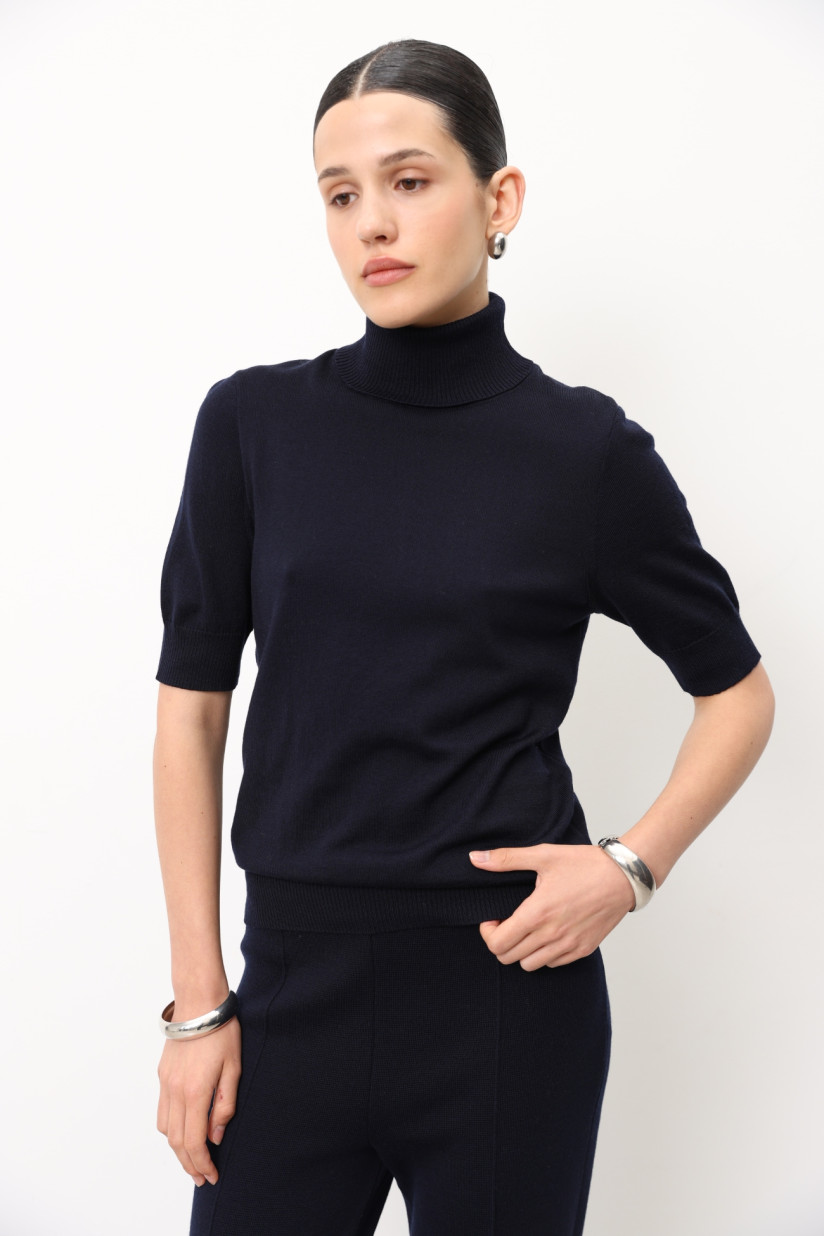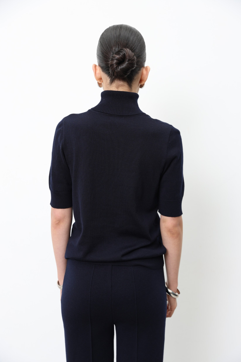 Гольф из 100% шерсти мериноса с коротким рукавом темно-синий