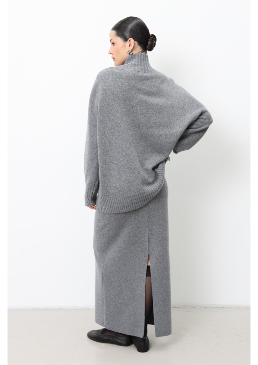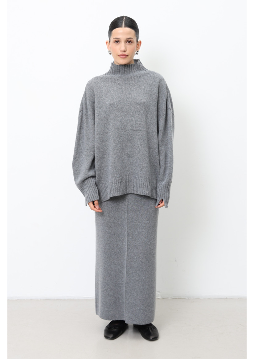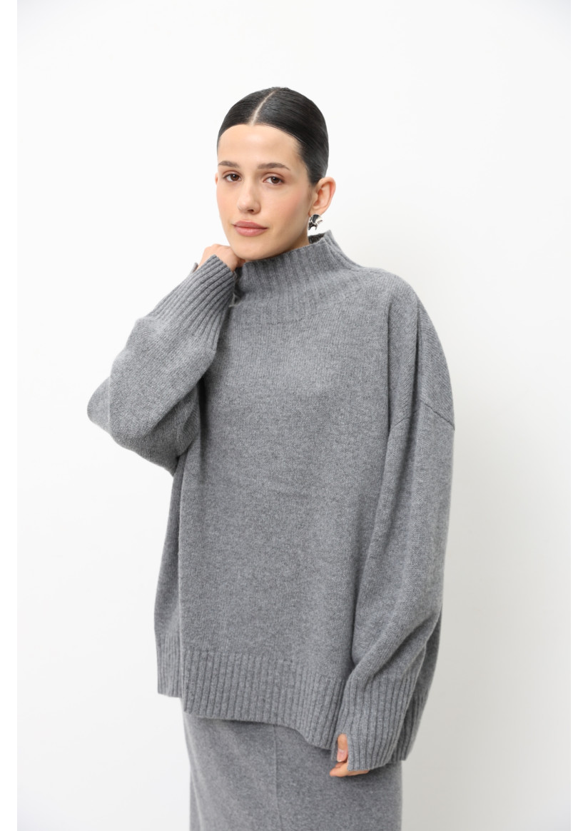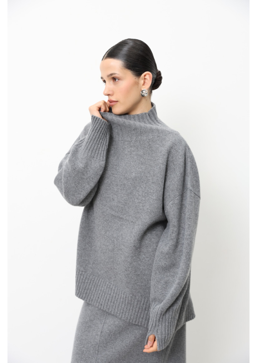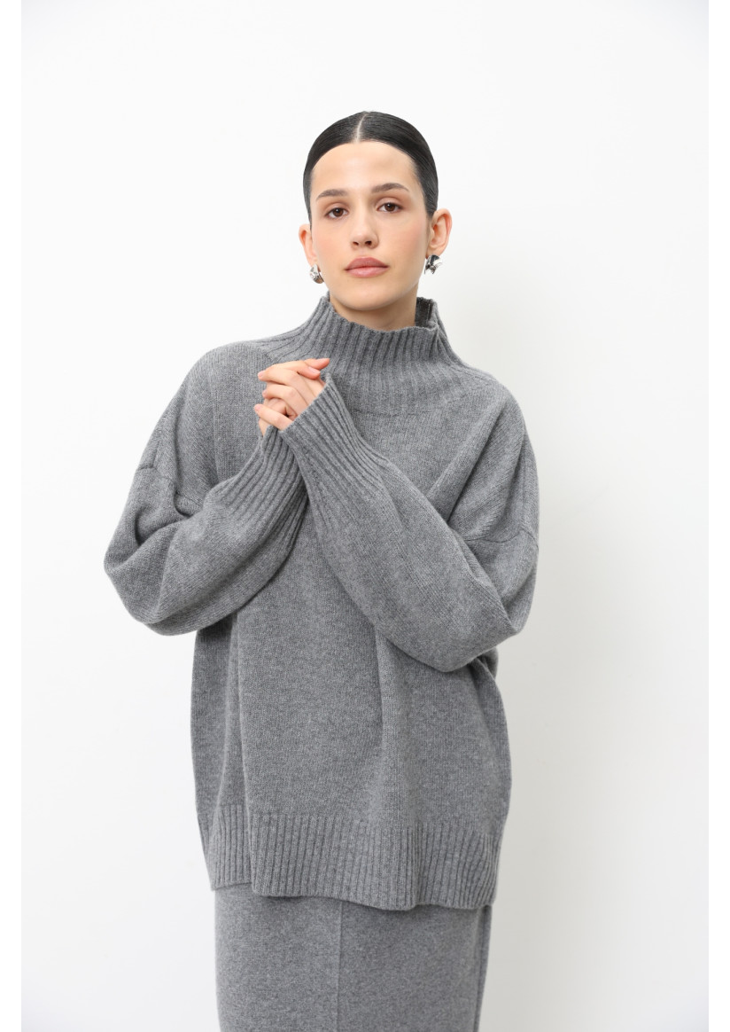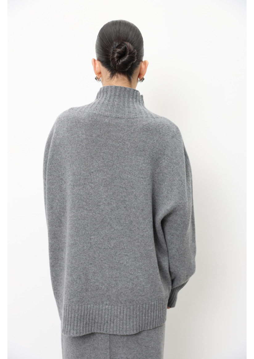 Объемный джемпер с воротником-стойкой из шерсти ягнят серый