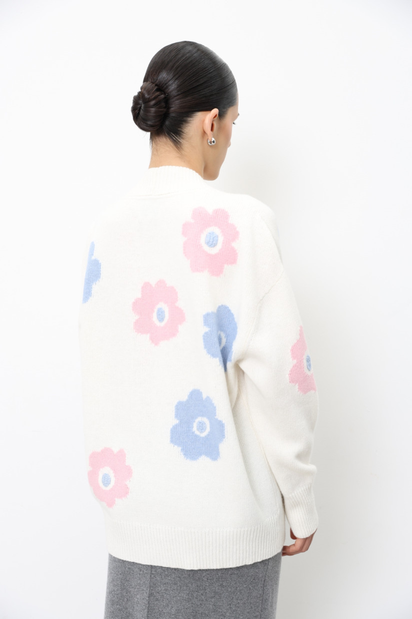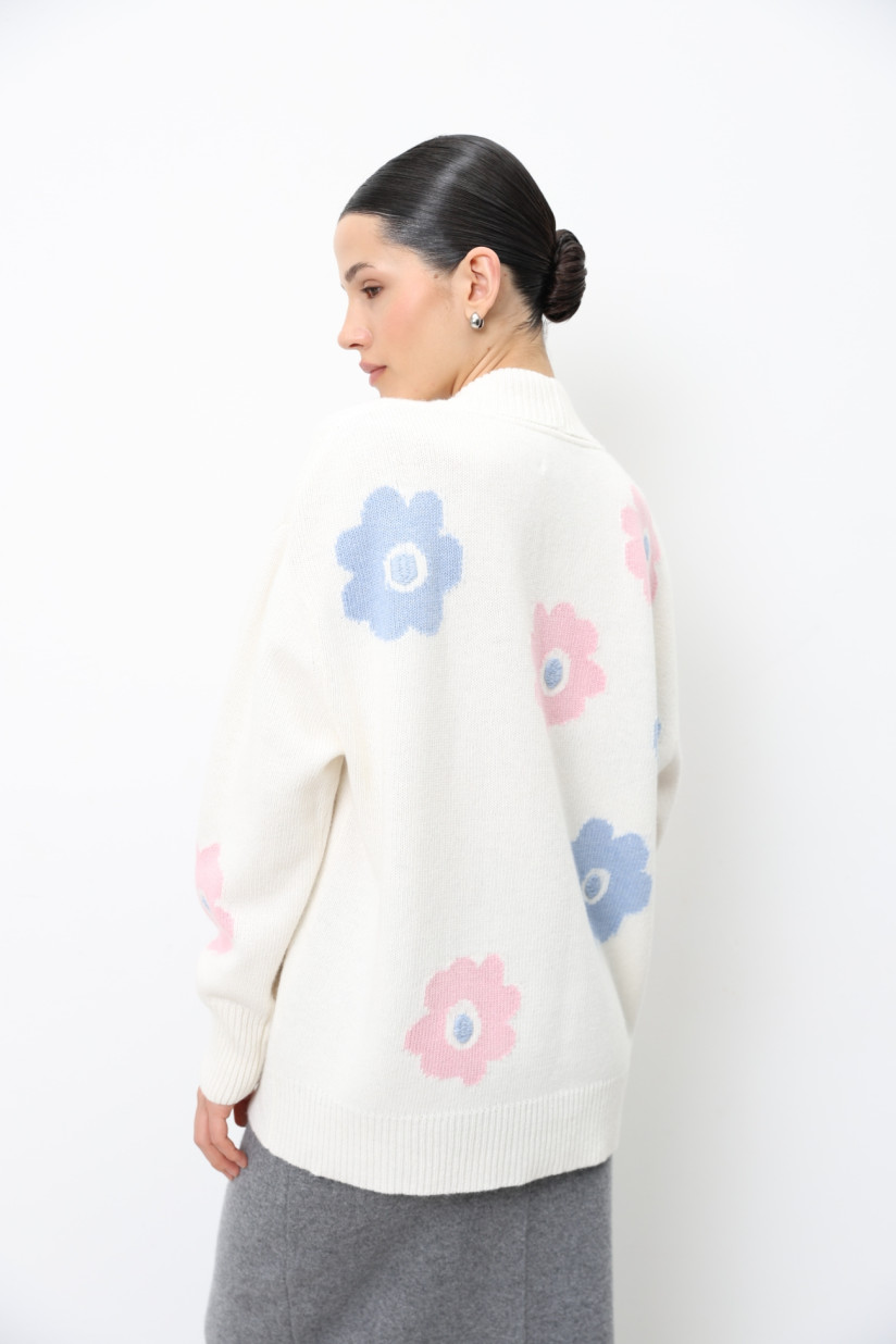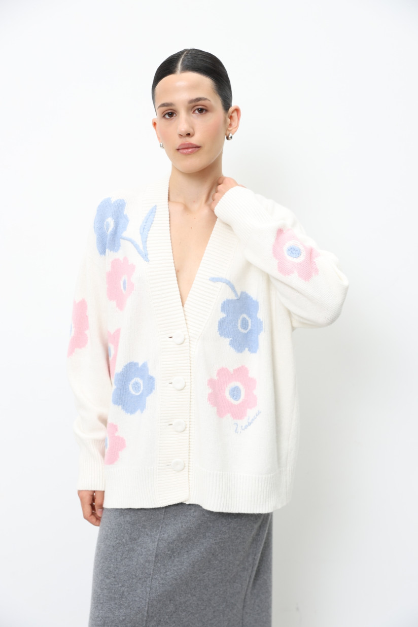 Oversize-кардиган с вышитыми цветами молочный