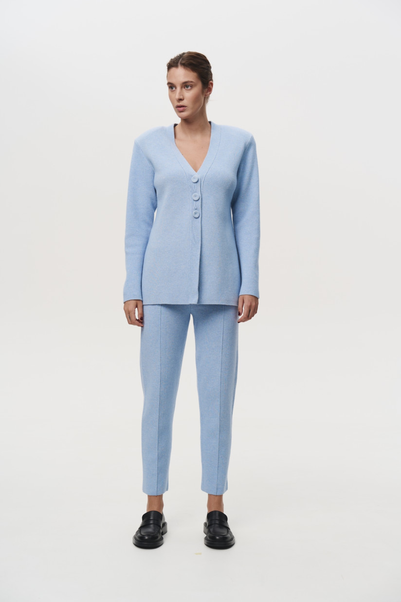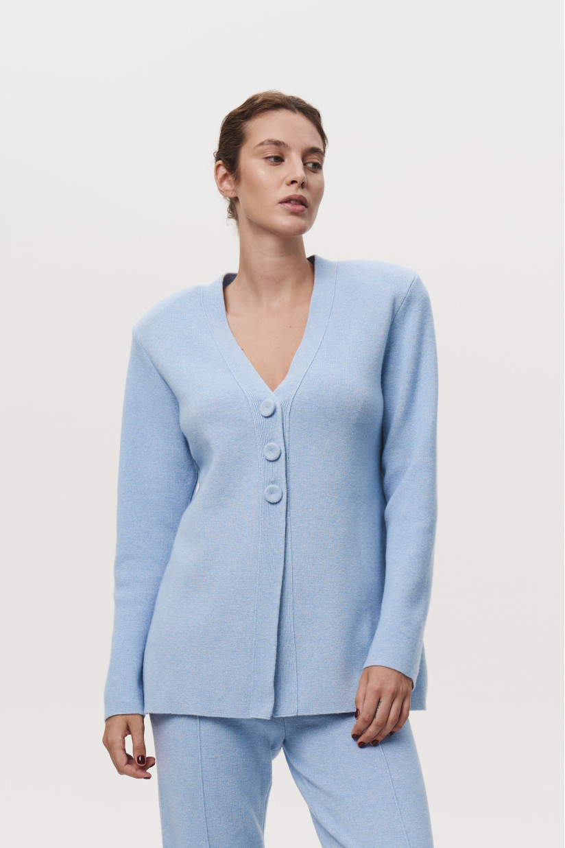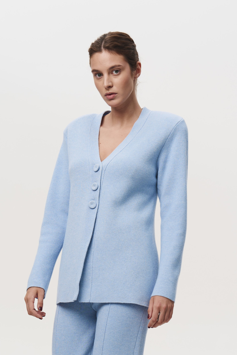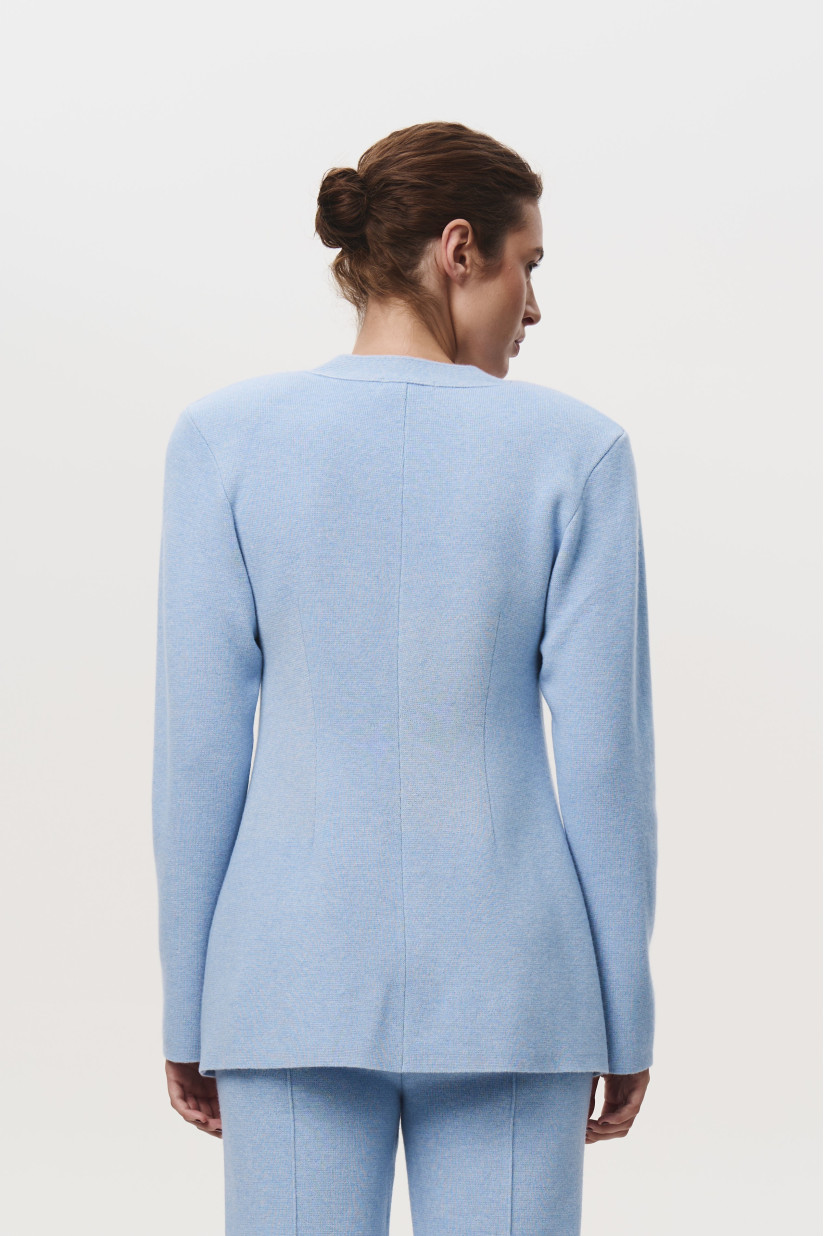 Приталенный жакет с подплечниками голубой