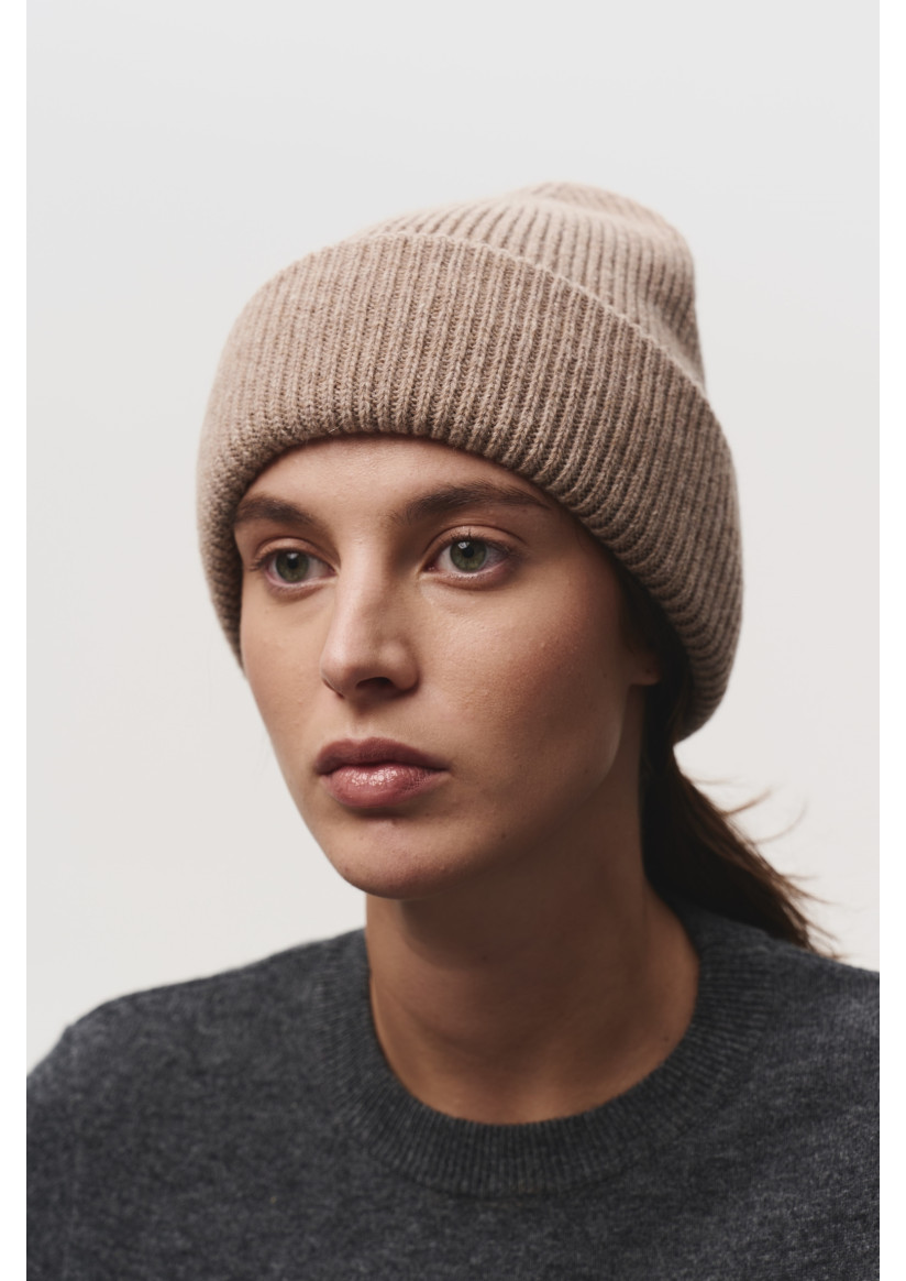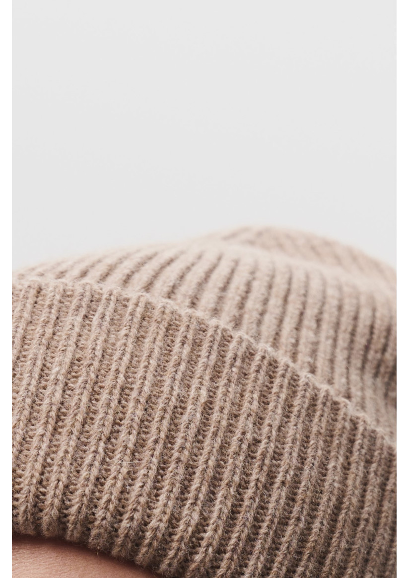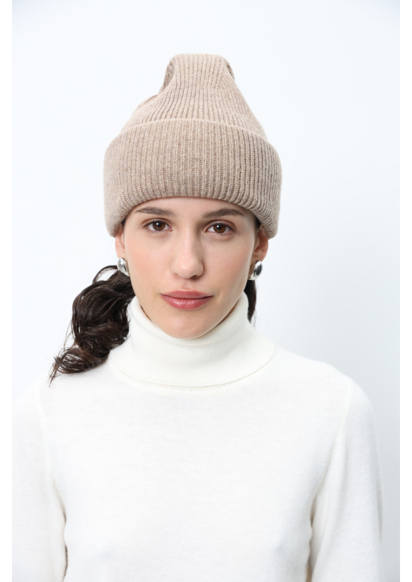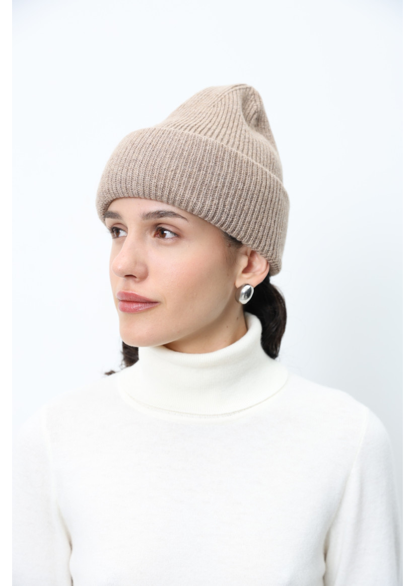 Шапка с отворотом из мягкой шерсти ягненка темно-бежевая