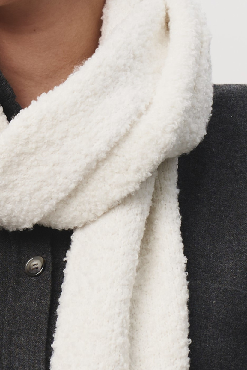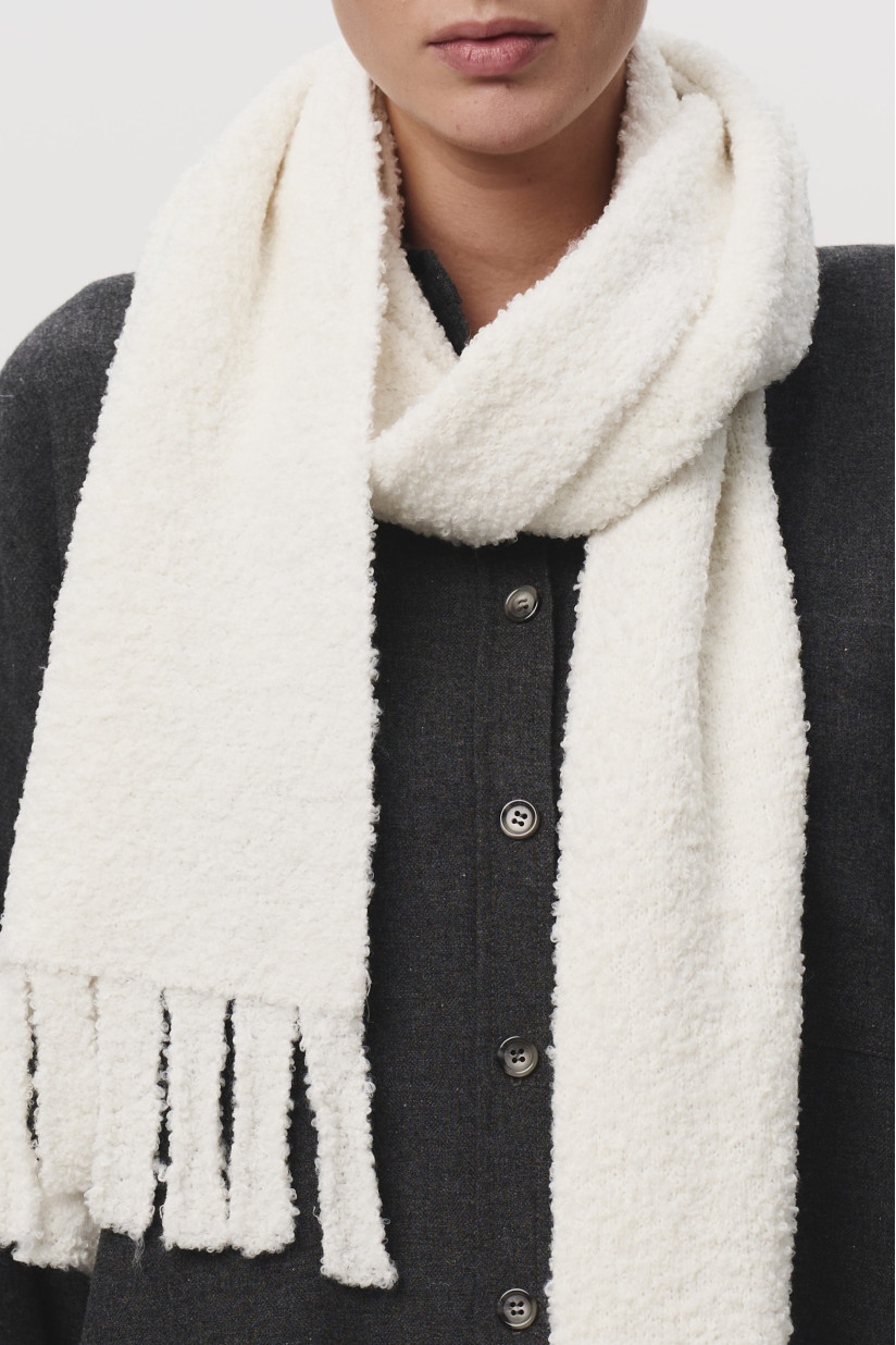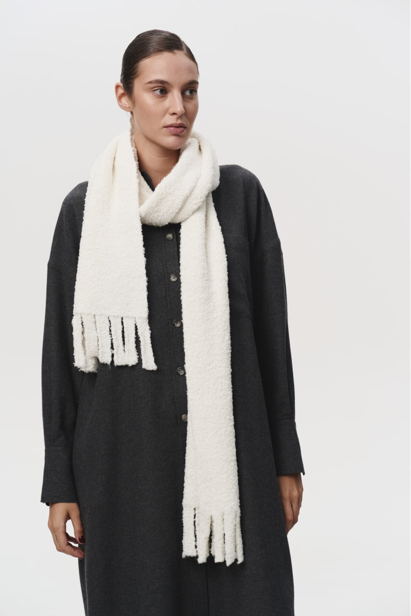 Трикотажный шарф из мягкой буклеванной пряжи. Невероятно нежный, мягкий, женственный аксессуар нашел новое прочтение в новой осенней коллекции, идеально дополнив все образы. Носите с любым стилем, совмещайте с любым луком. Идеально для осени