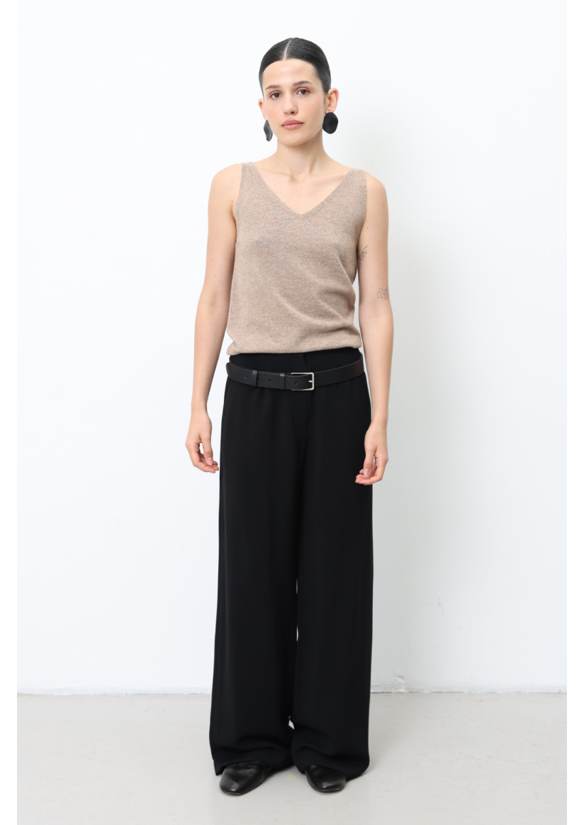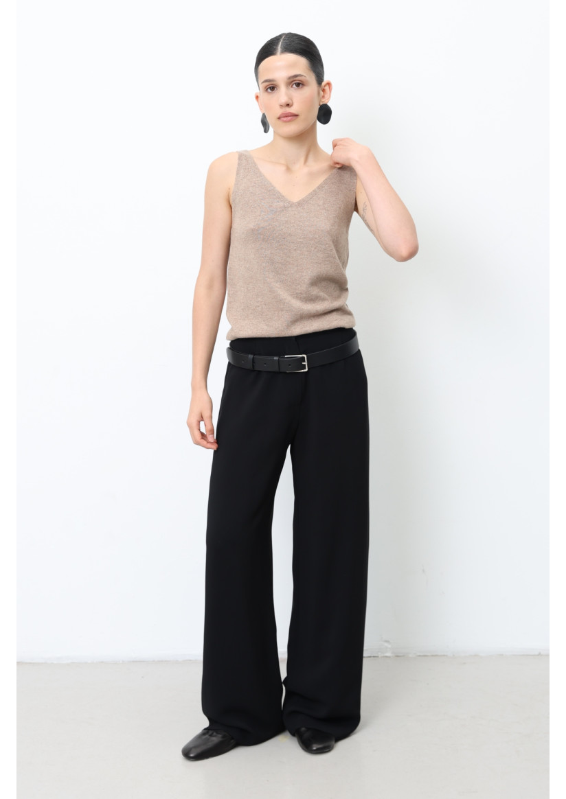 Классические брюки полной длины из вискозной ткани. Прямой силуэт, свободный от бедра, обеспечивает комфортную посадку. Боковые втачные карманы и жёсткий пояс с застёжкой на пуговицу и молнию сочетают практичность и элегантность.