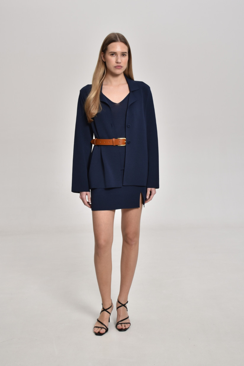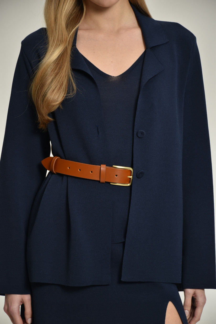 Трикотажный пиджак из вискозы с разрезом на спине темно-синий