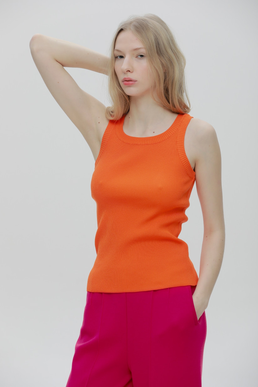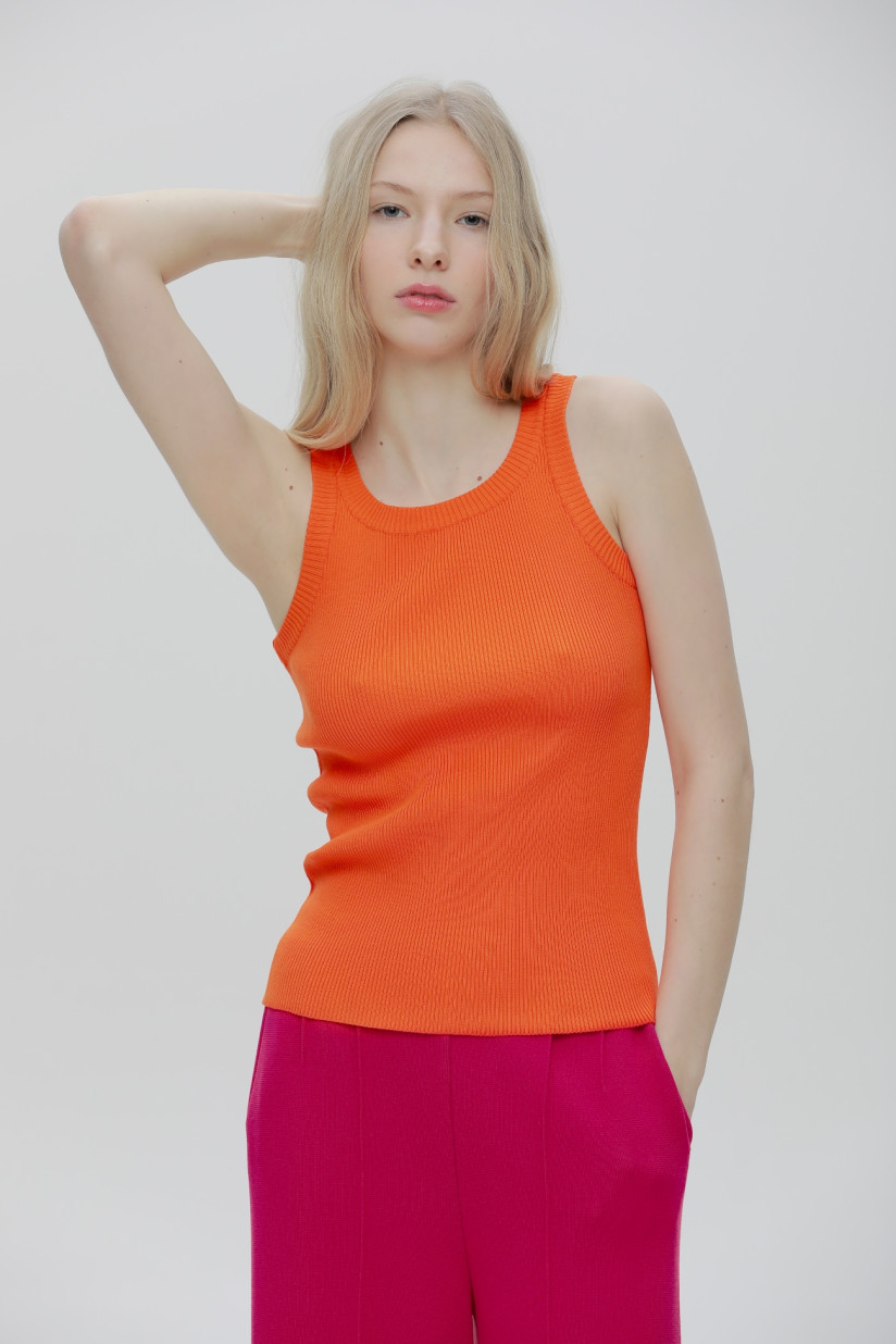 Трикотажный топ в рубчик оранжевый