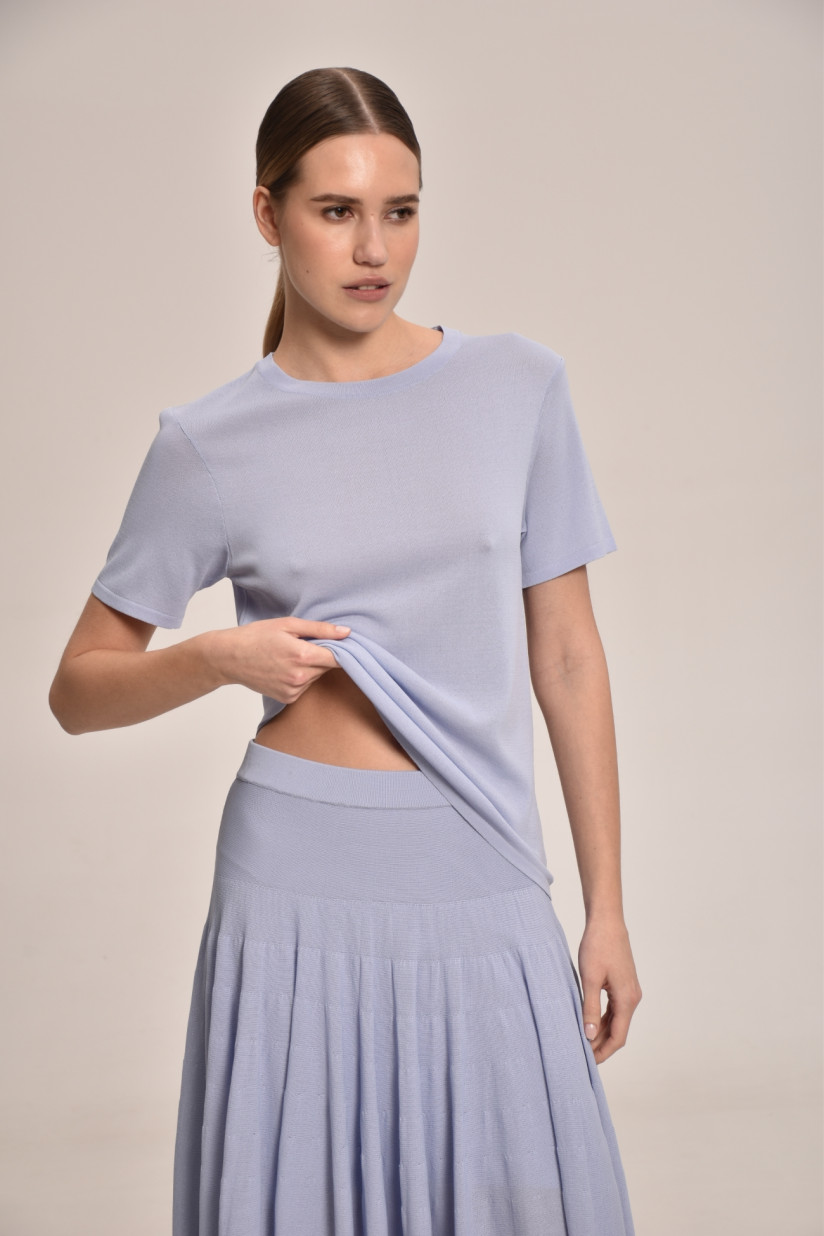 Юбка длиной за колено из мягкой шелковистой вискозы – идеальный выбор для ищущих качественный, удобный и стильный трикотаж. Юбка имеет приятную на ощупь текстуру и обеспечивает комфорт в течение всего дня.
