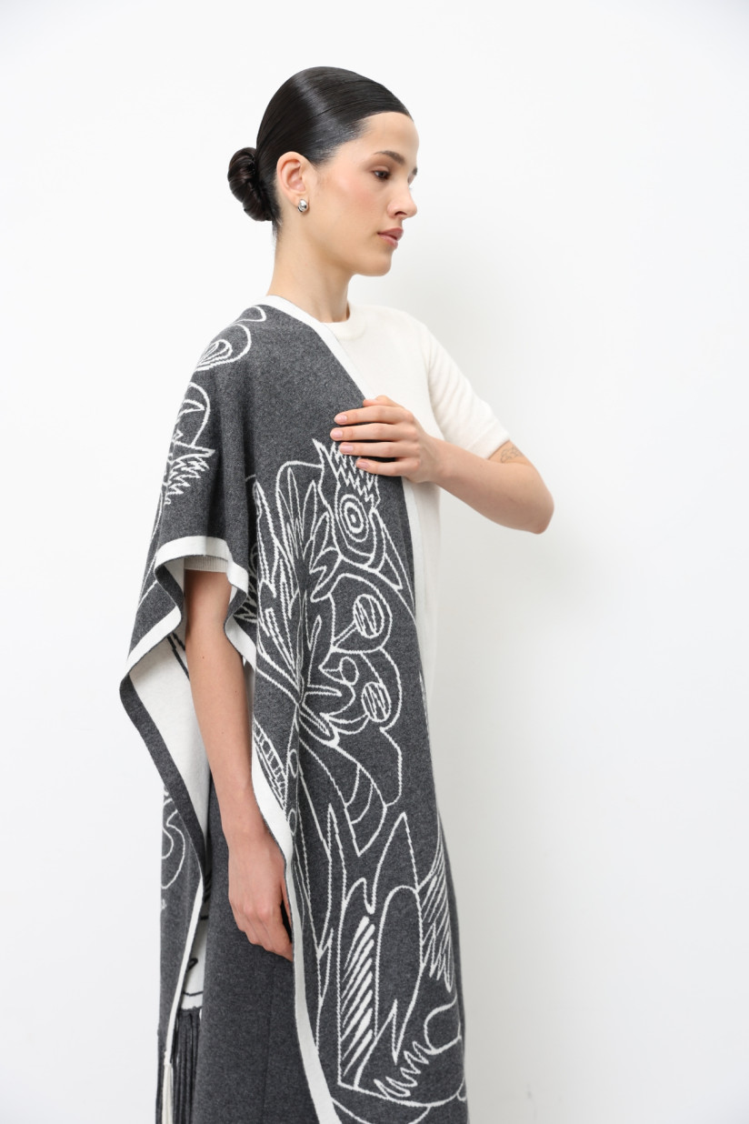 Жаккардовый двухсторонний шарф с графическим мотивом темно-серый