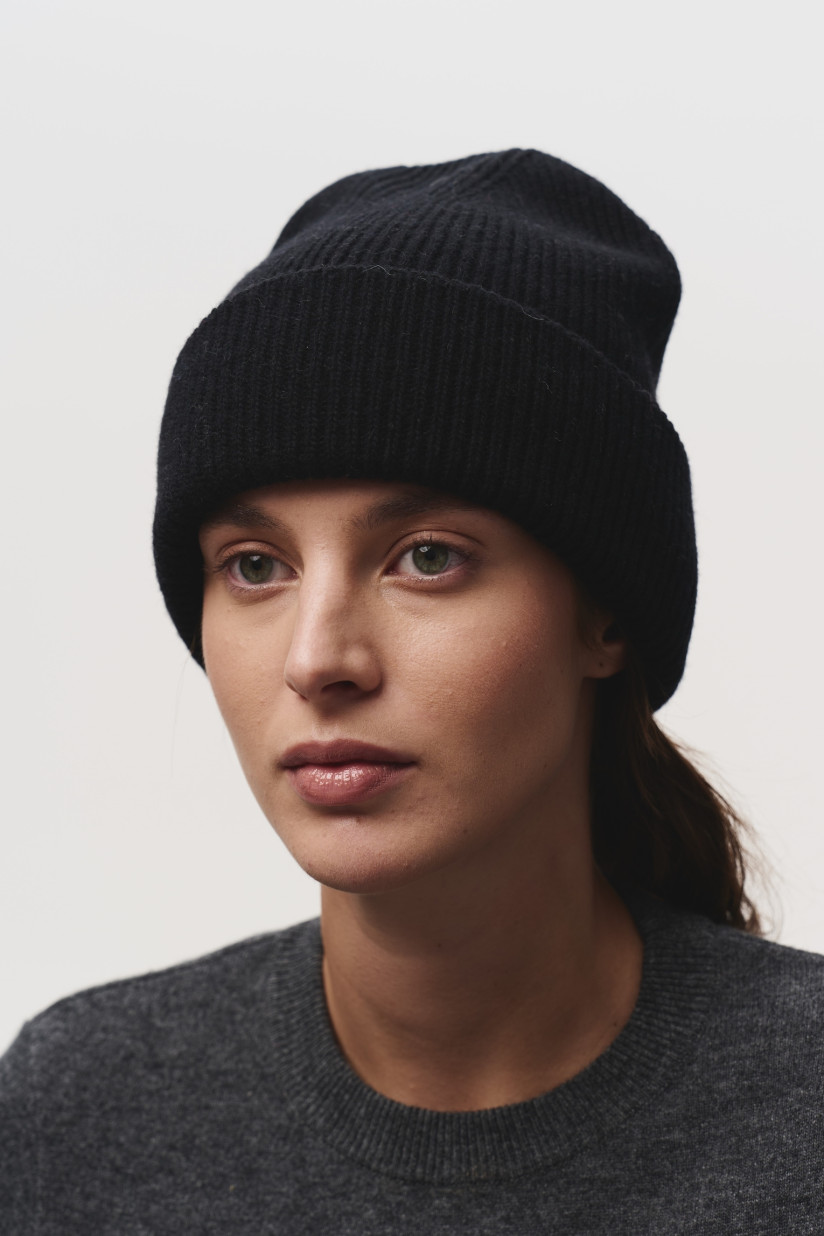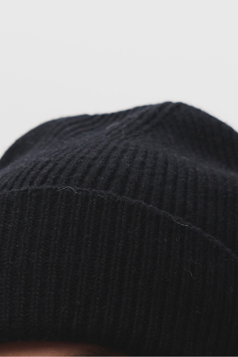 Шапка з відворотом з м'якої вовни ягнят чорна