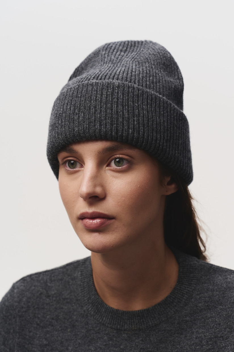 Шапка з відворотом з м'якої вовни ягнят темно-сірий