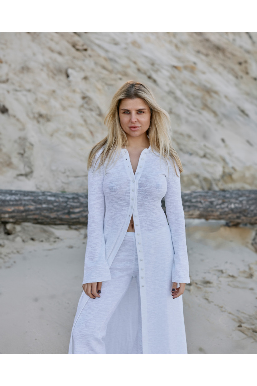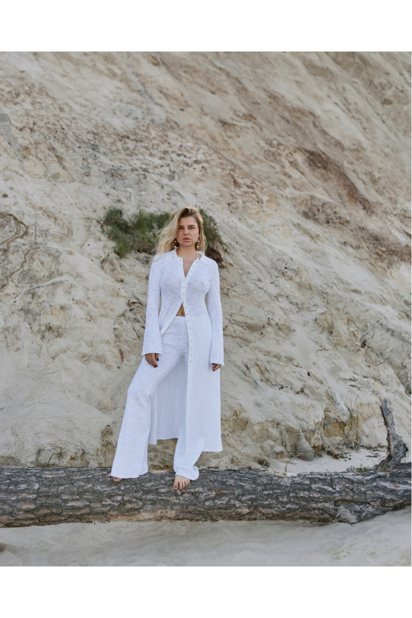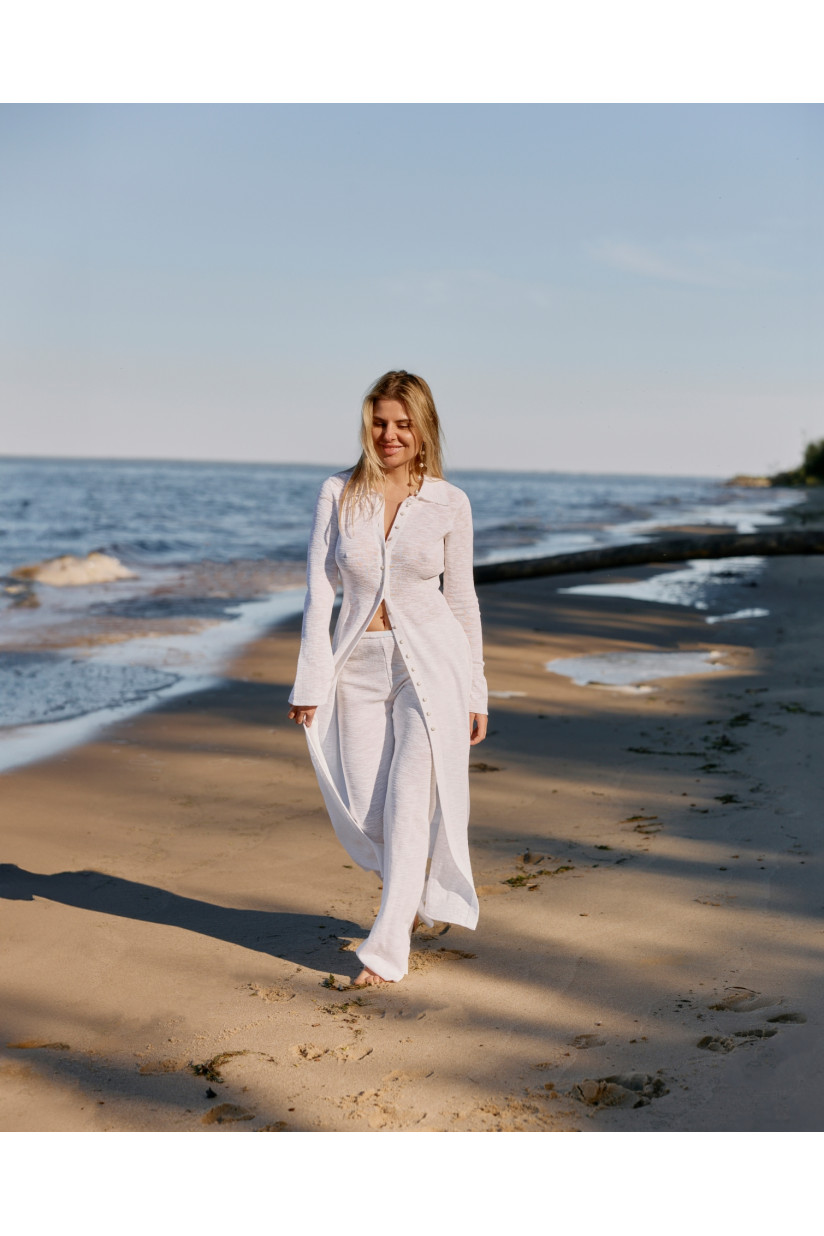 Злегка розкльошені штани з бавовняної пряжі. Поєднуйте їх з довгим кардиганом або кроп-топом з лінійки RITO x LINA того ж кольору.