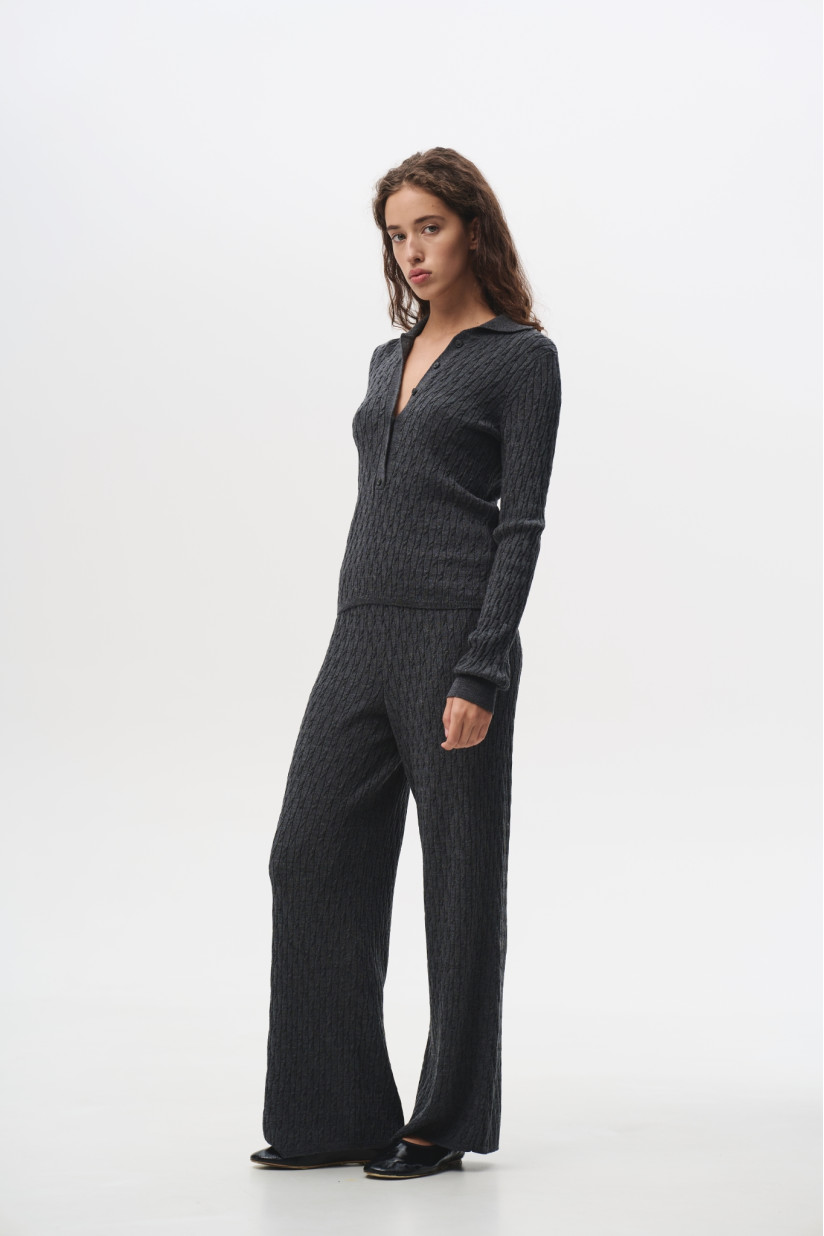 Штани у коси зі 100% вовни мериноса темно-сірі