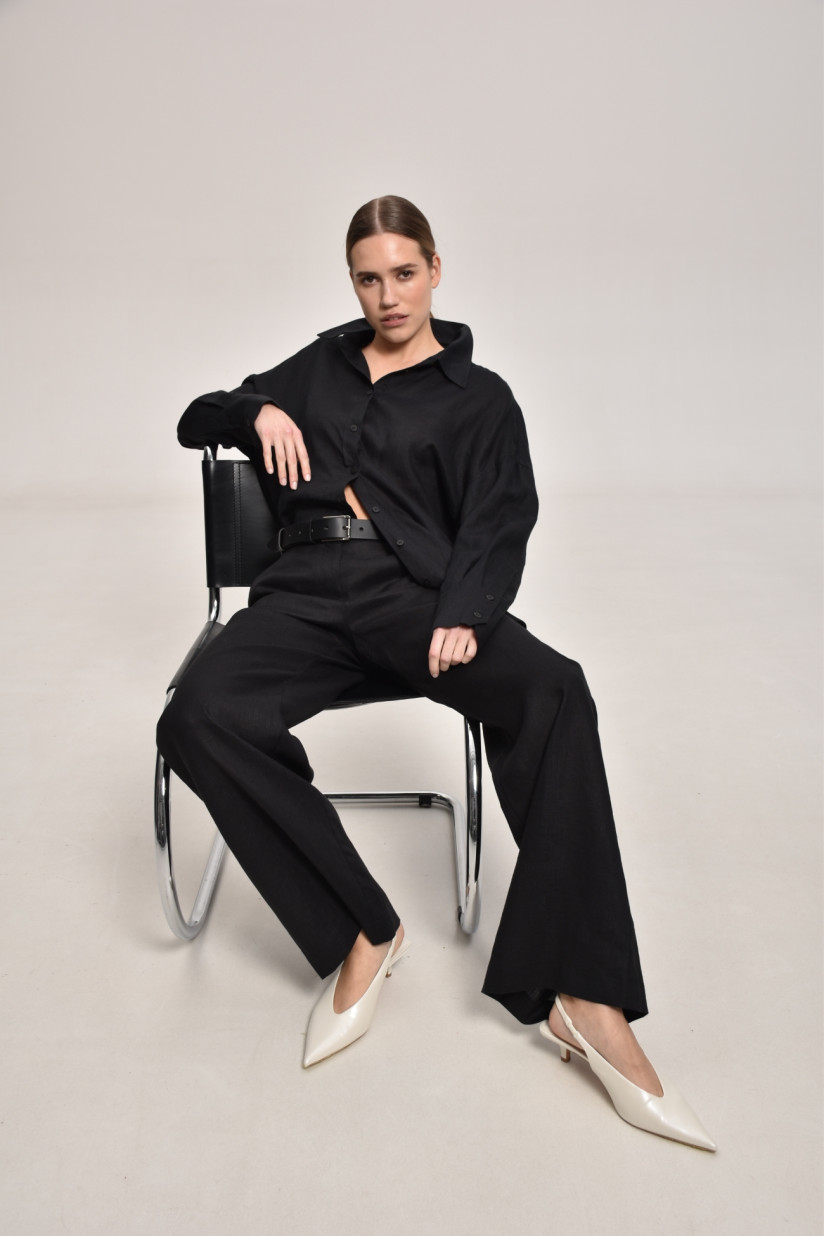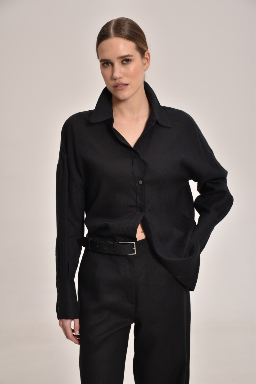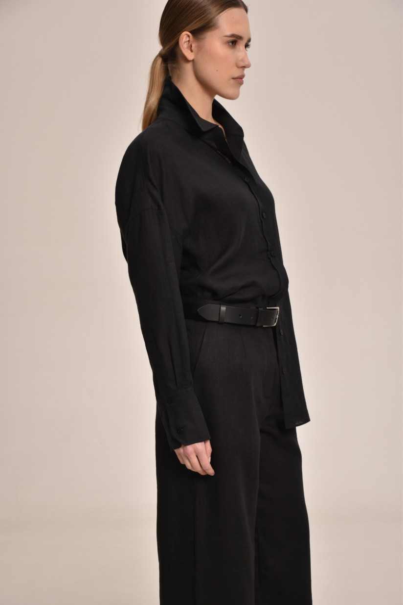 Сорочка з льону з розрізом нахлистом на спині чорна