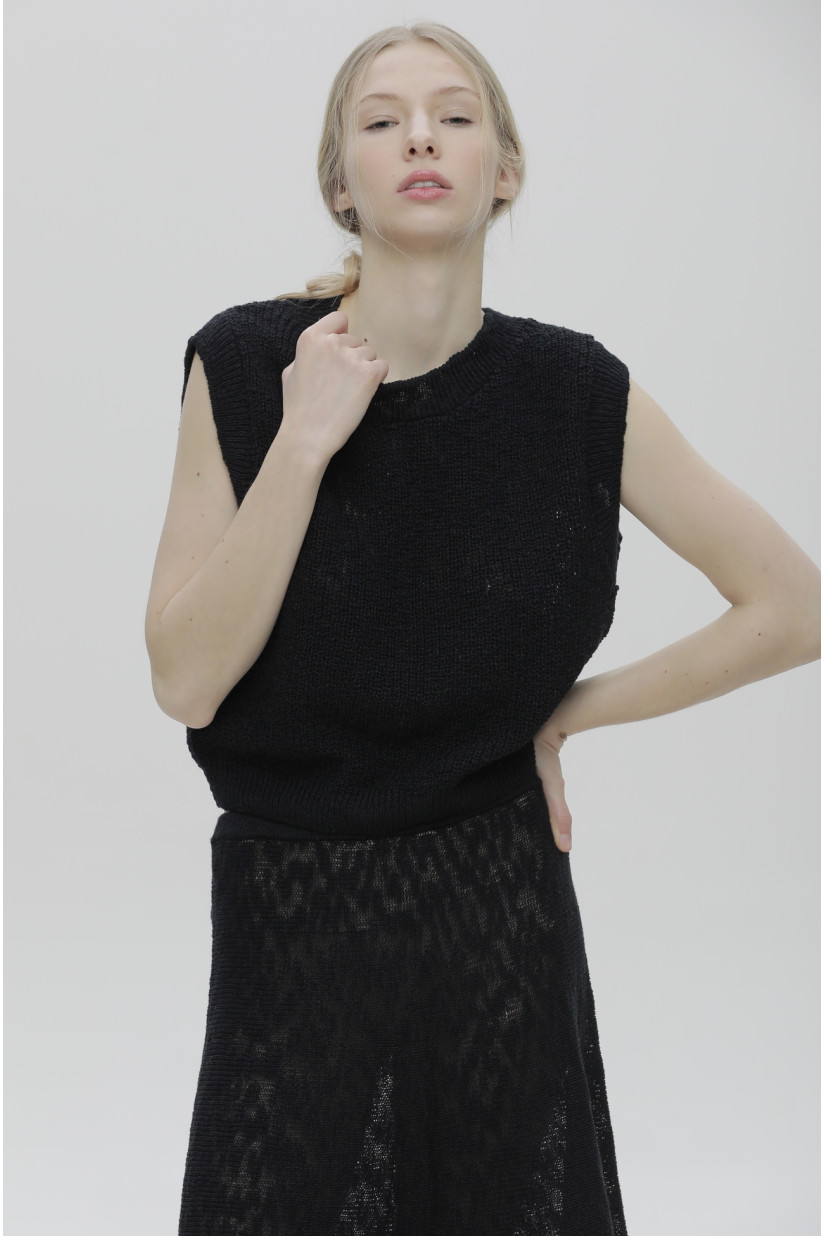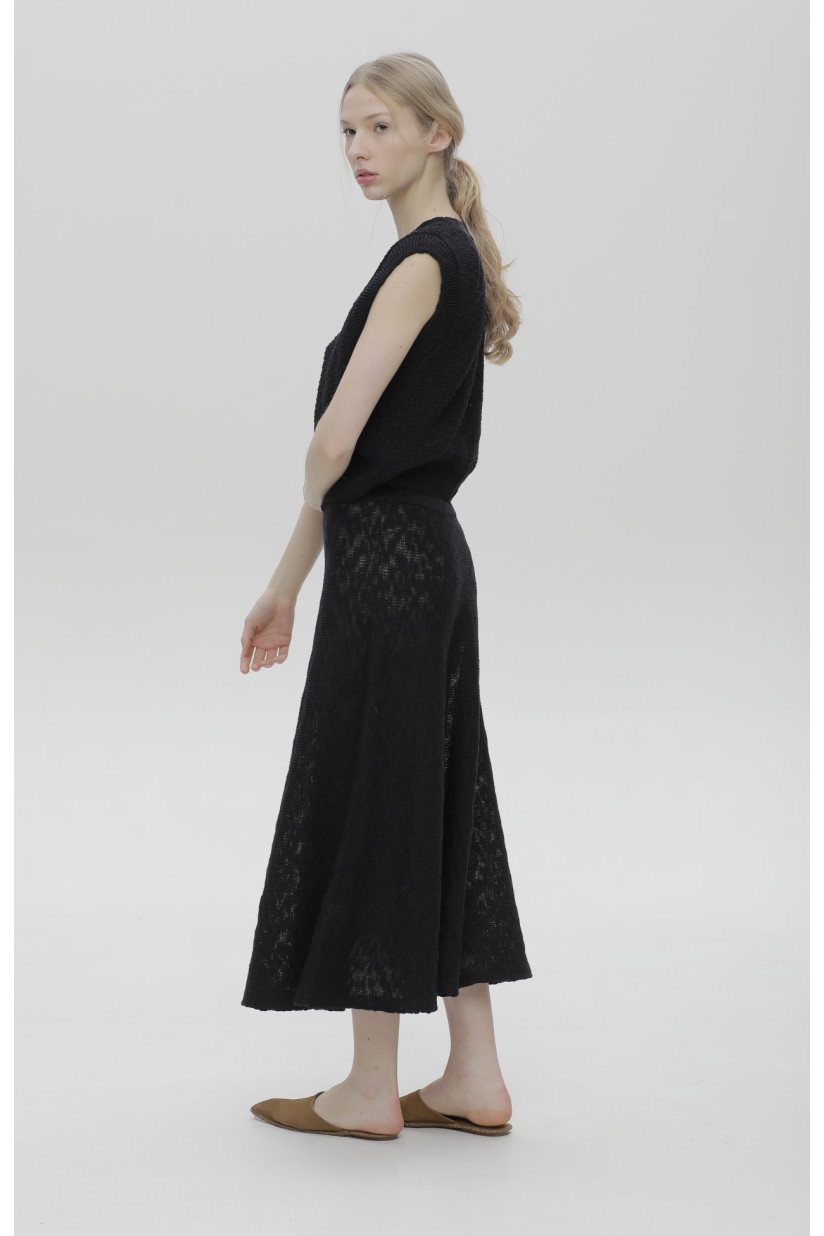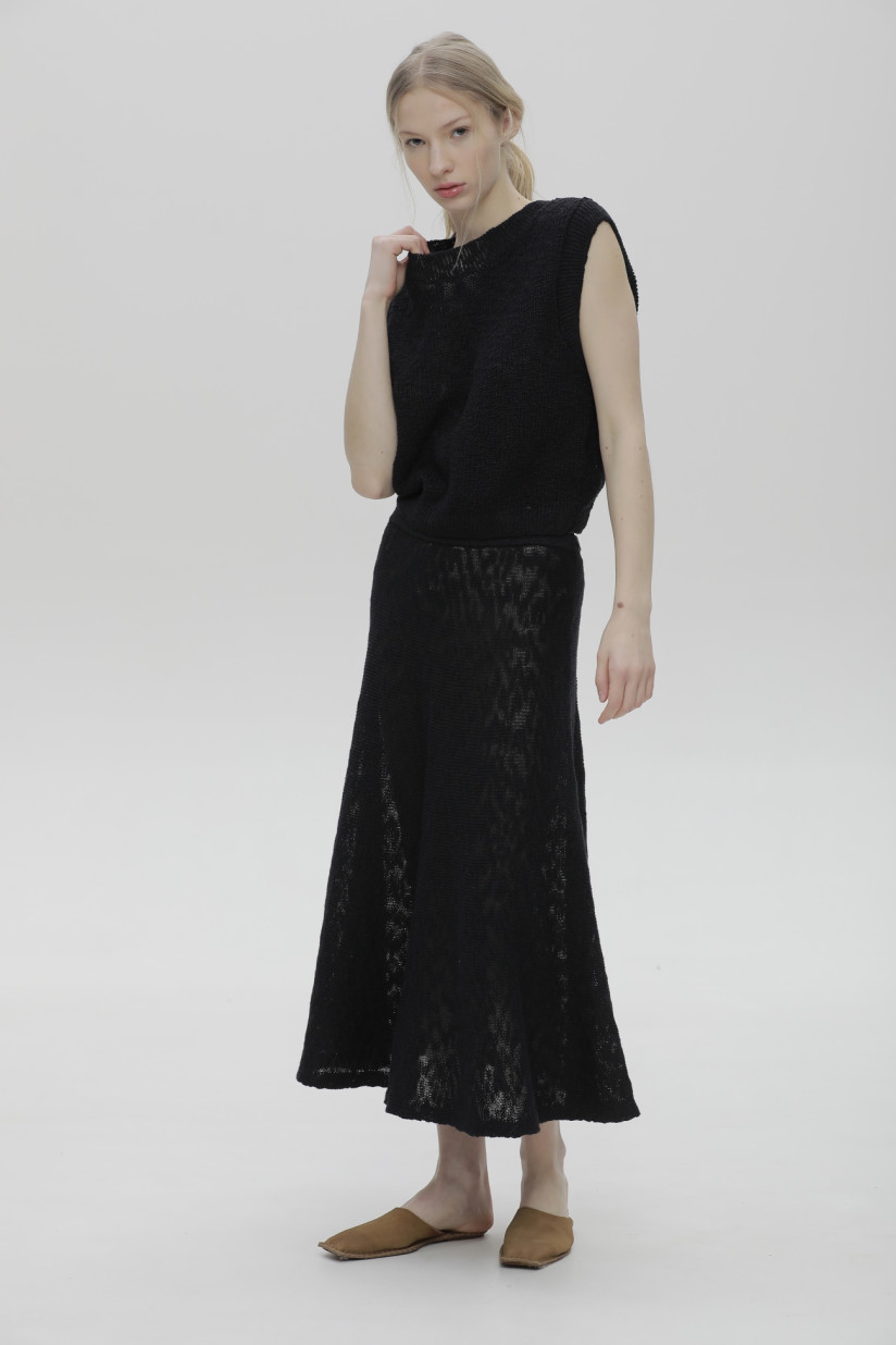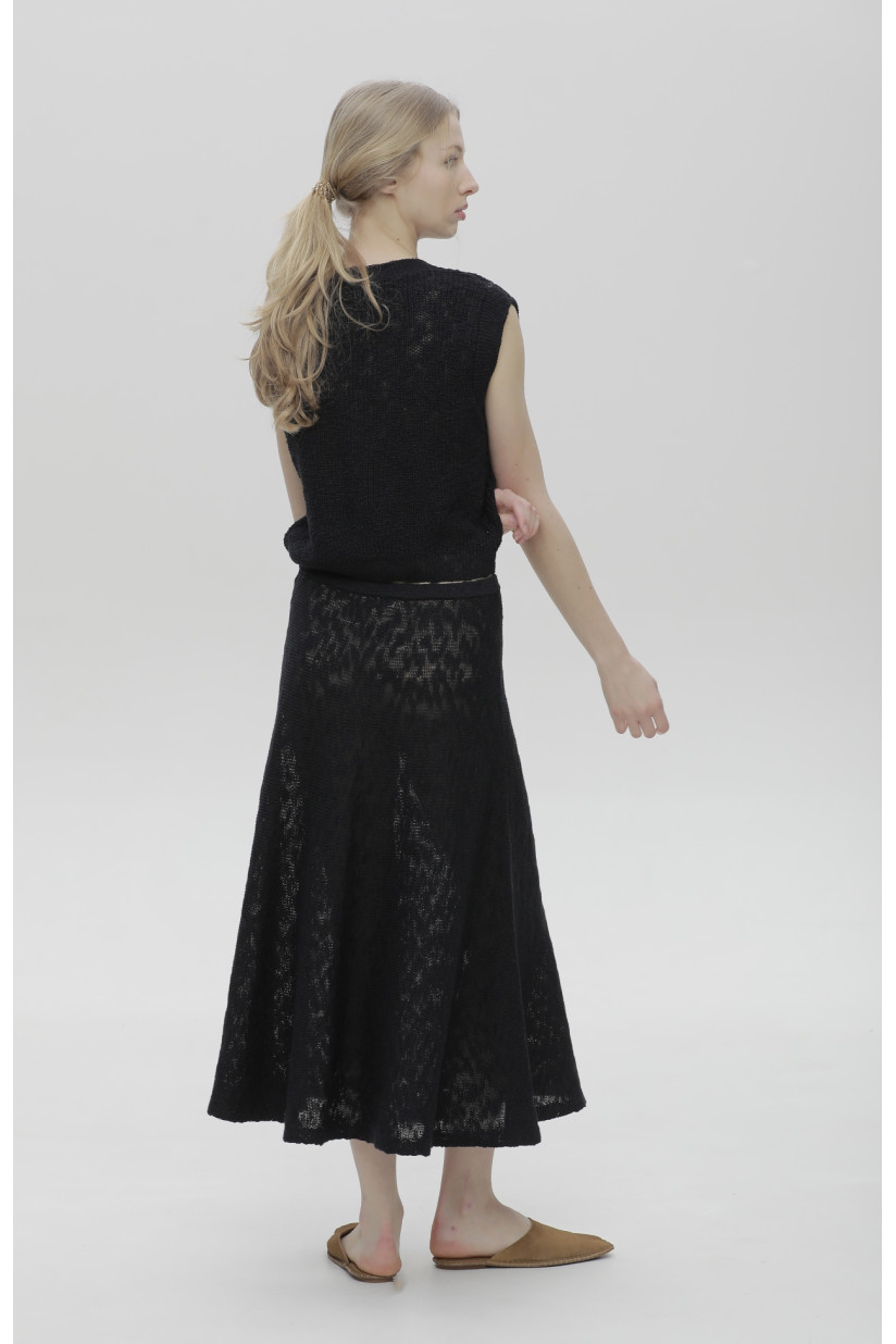Спідниця з фактурної пряжі повітряної в'язки прямого силуету. Без підкладки. Пояс на гумці.  Носіть зі топом, жилетом та кардиганом з тієї ж лінійки.