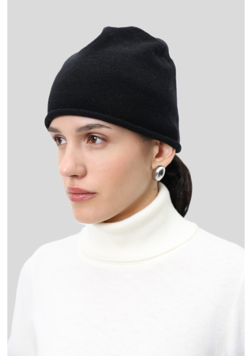 Базова шапка-біні вільного крою без підкладки, виконана з 100% кашеміру. Легка, надзвичайно м’яка та пластична — ніжно огортає голову, створюючи відчуття затишку. Завдяки гладкому одинарному трикотажу не тримає форму, а природно драпірується, додаючи образу невимушеності й комфорту.