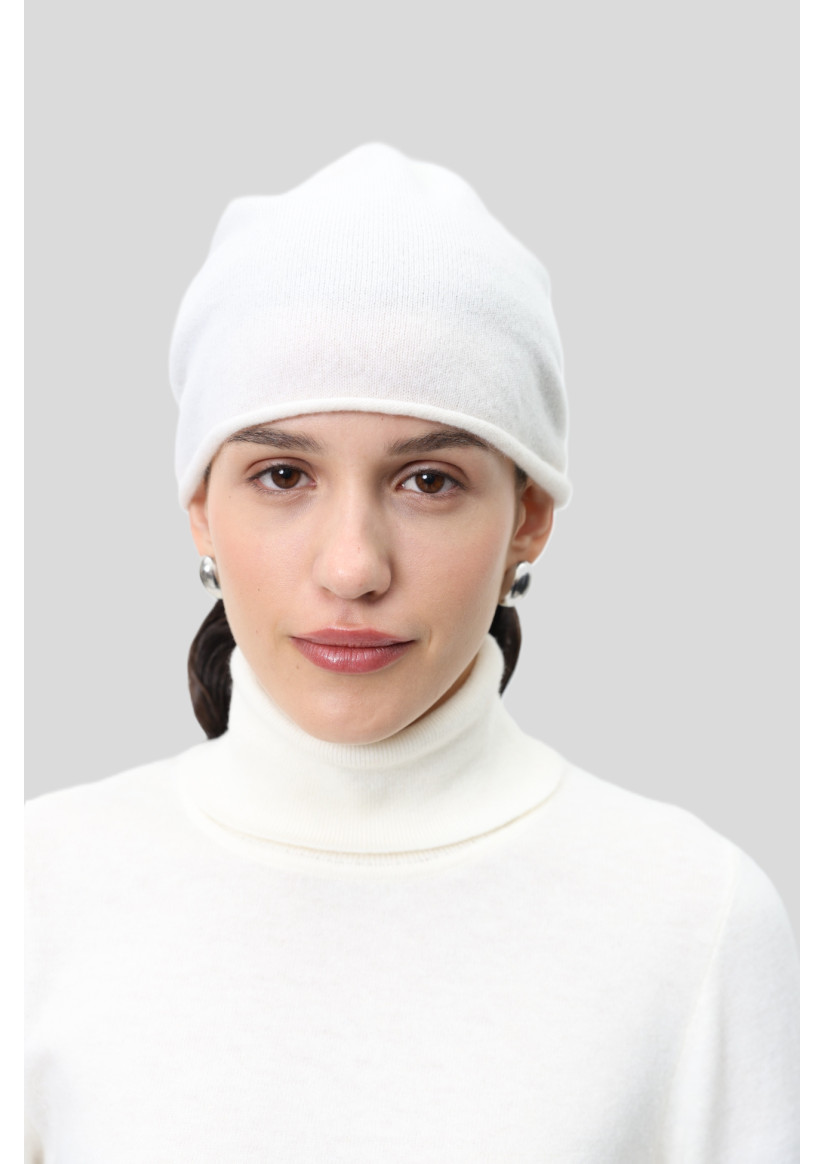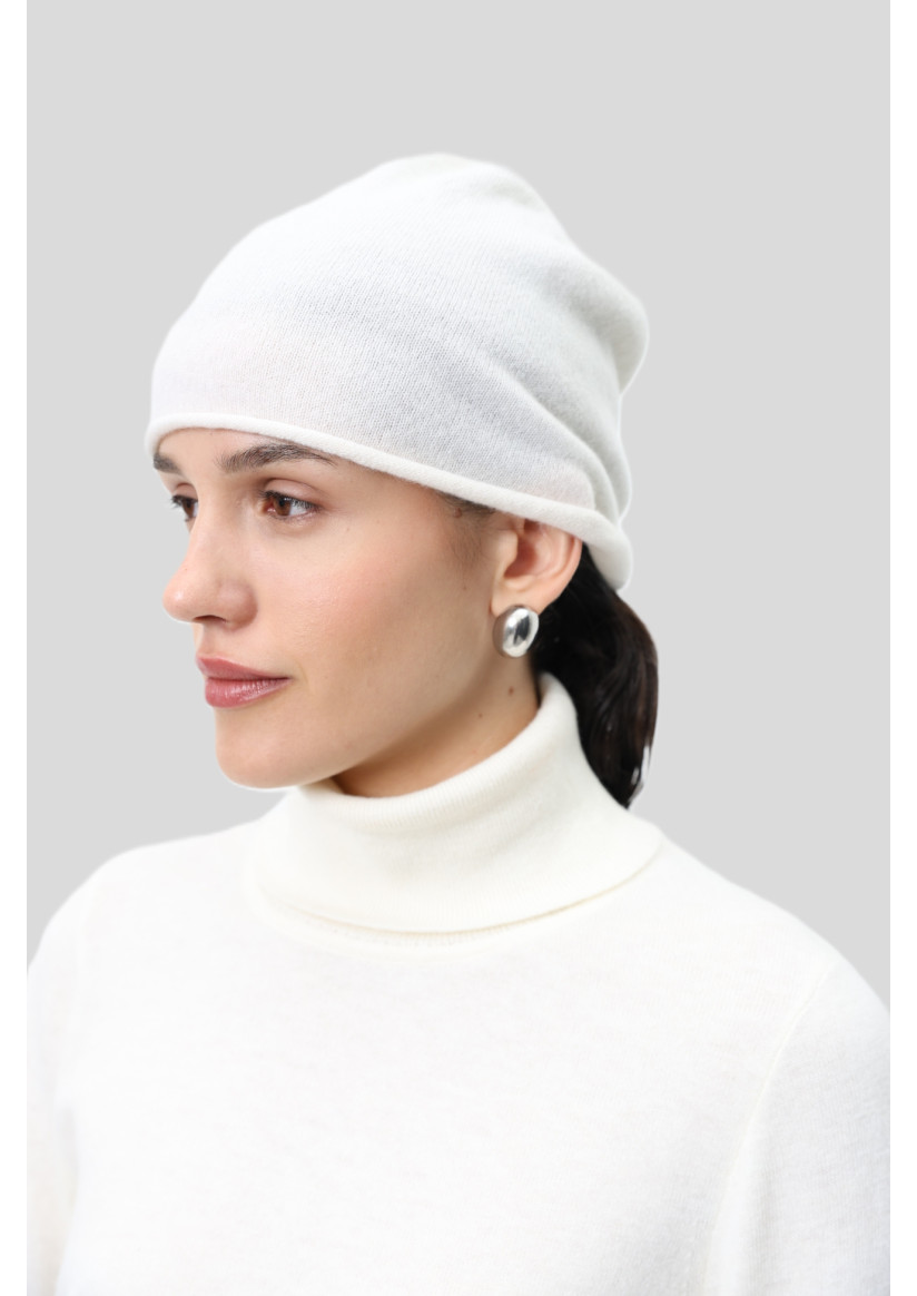 Базова шапка-біні вільного крою без підкладки, виконана з 100% кашеміру. Легка, надзвичайно м’яка та пластична — ніжно огортає голову, створюючи відчуття затишку. Завдяки гладкому одинарному трикотажу не тримає форму, а природно драпірується, додаючи образу невимушеності й комфорту.
