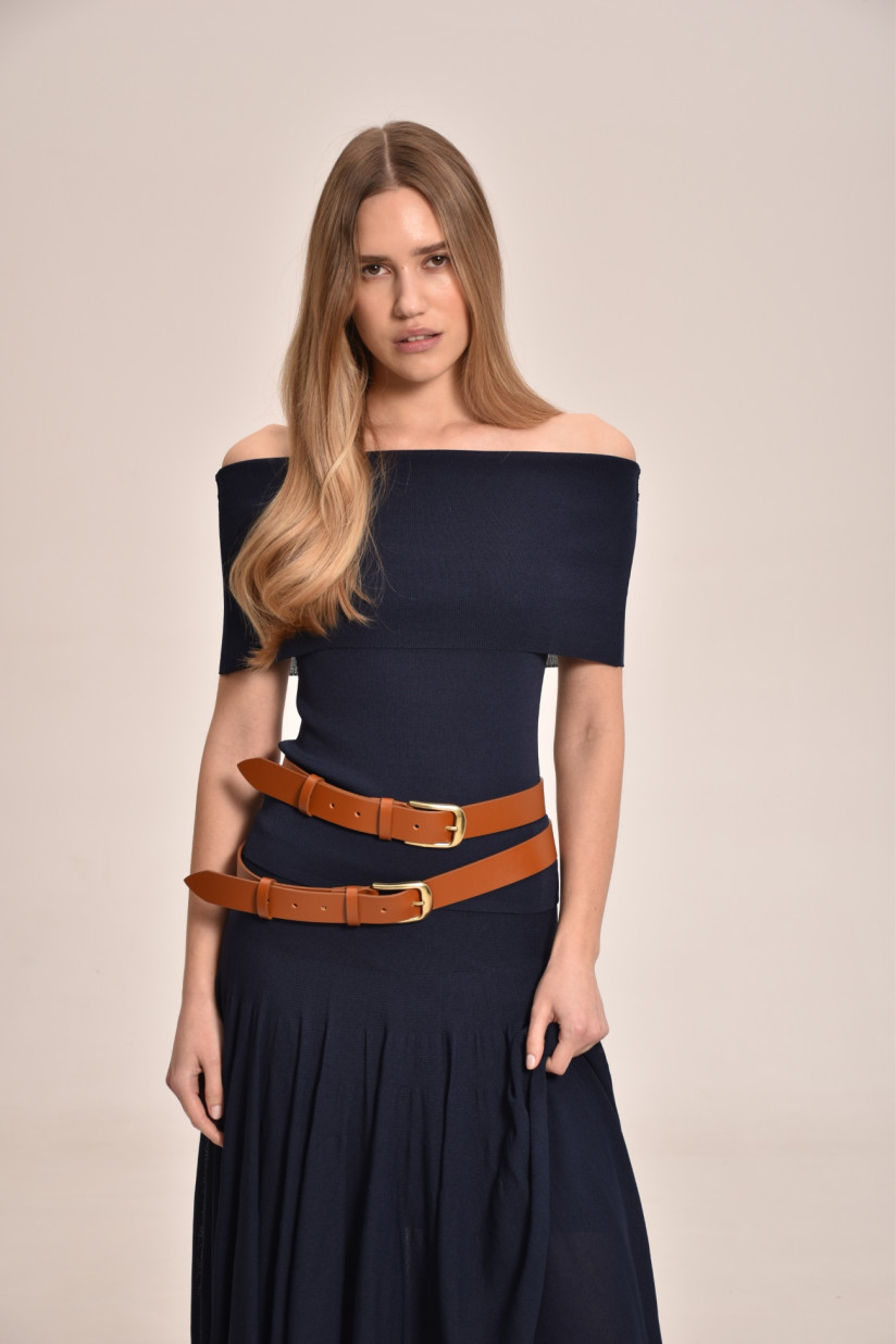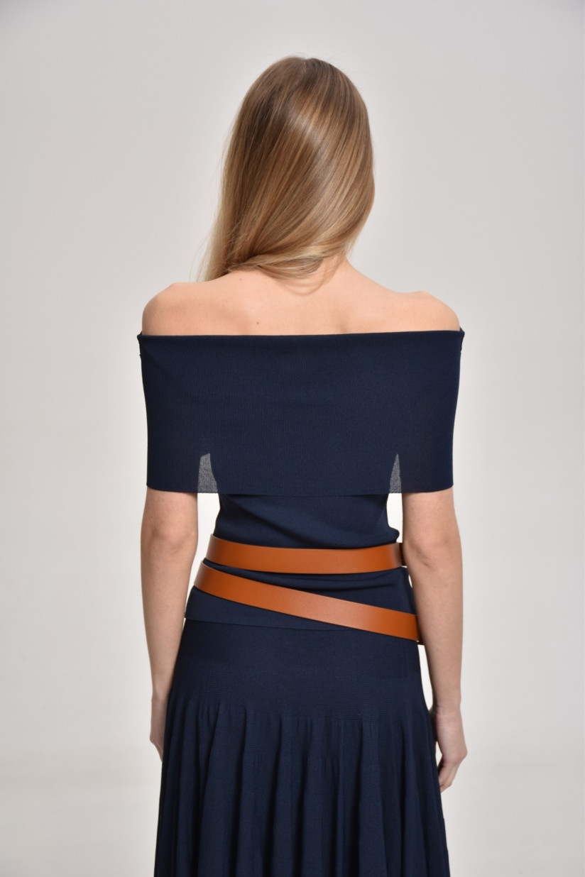 Топ з віскози з відворотом темно-синій