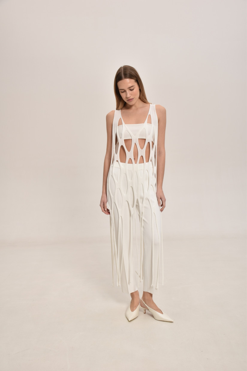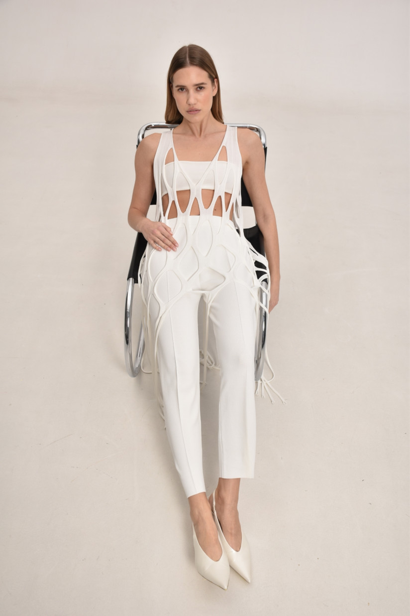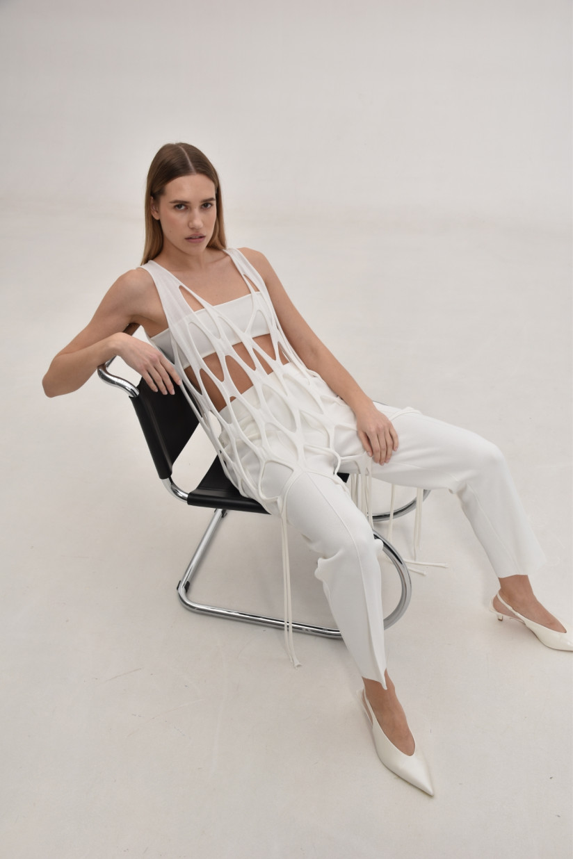 Трикотажні штани з віскози, пояс на гумці, стрілка швом спереду і ззаду моделі. Легкі, шовковисті брюки, що злегка завужуються донизу, - основа у весняному гардеробі. Незалежно від того, що ви надягнете - об'ємну чоловічу сорочку і човники, або піджак і ботильйони, або футболку, трикотажний кардиган і масивні кросівки - образ однозначно буде елегантним.