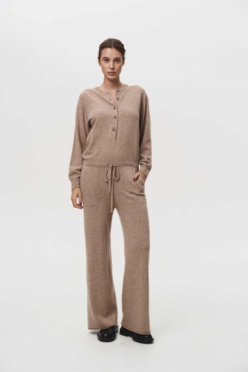 Трикотажний комбінезон. Комбінезон на ґудзиках, круглий виріз, відрізна талія, пояс на кулісці, кишені, прямі брюки. Нова і вже улюблена модель осені. Стильний, м'який, повітряний і зручний. Стане улюбленим і подарує неймовірні тактильні відчуття.