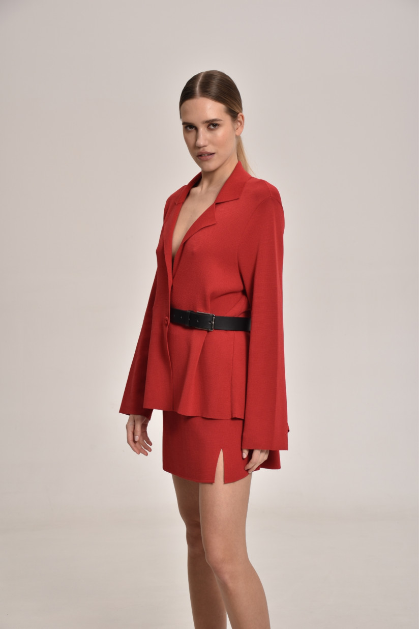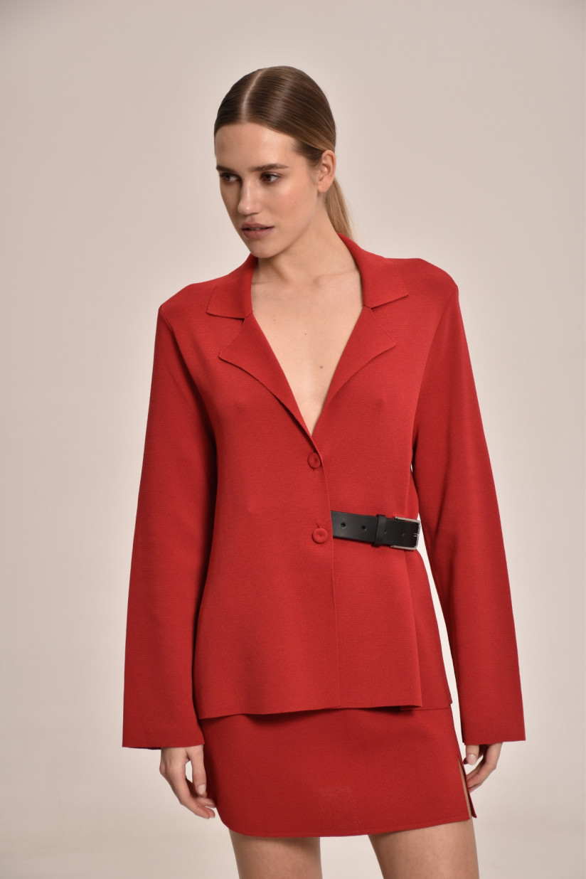 Трикотажний піджак з віскози з розрізом на спині темно-червоний