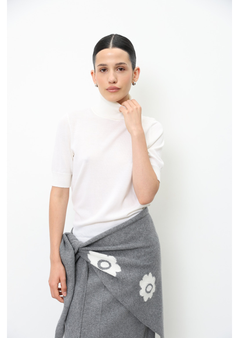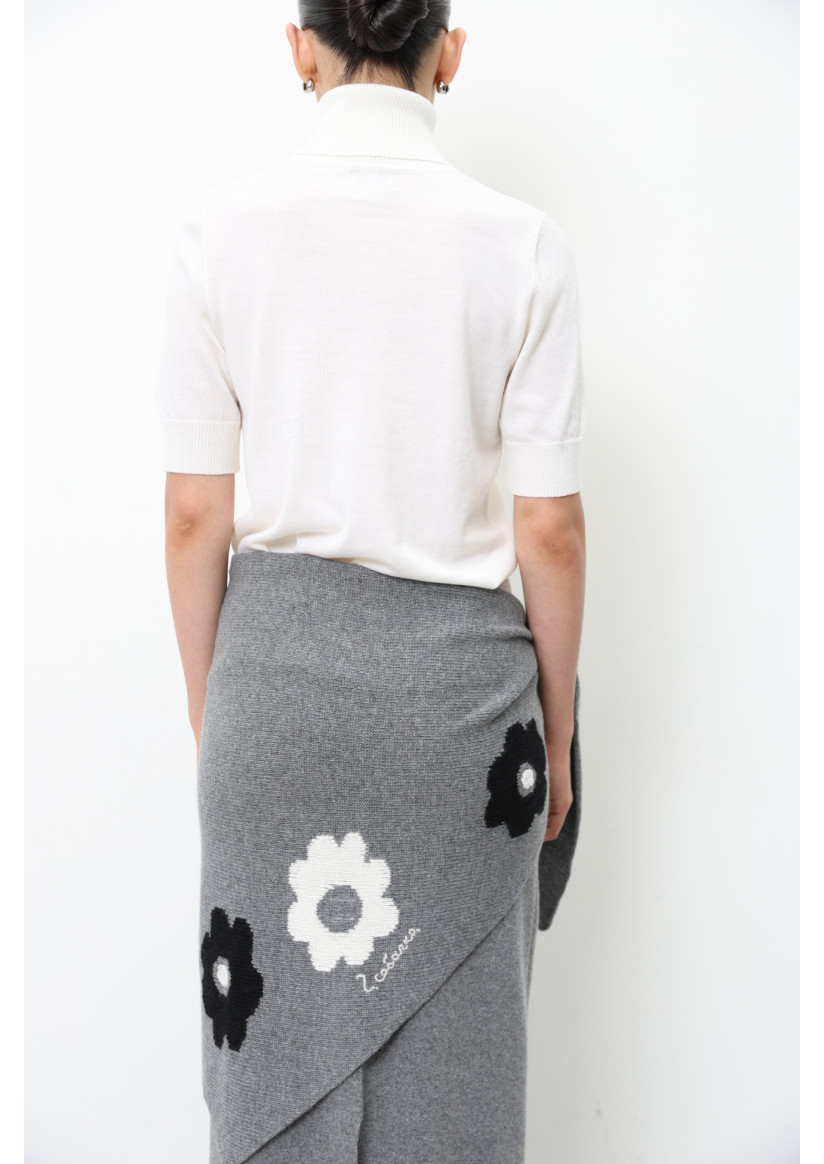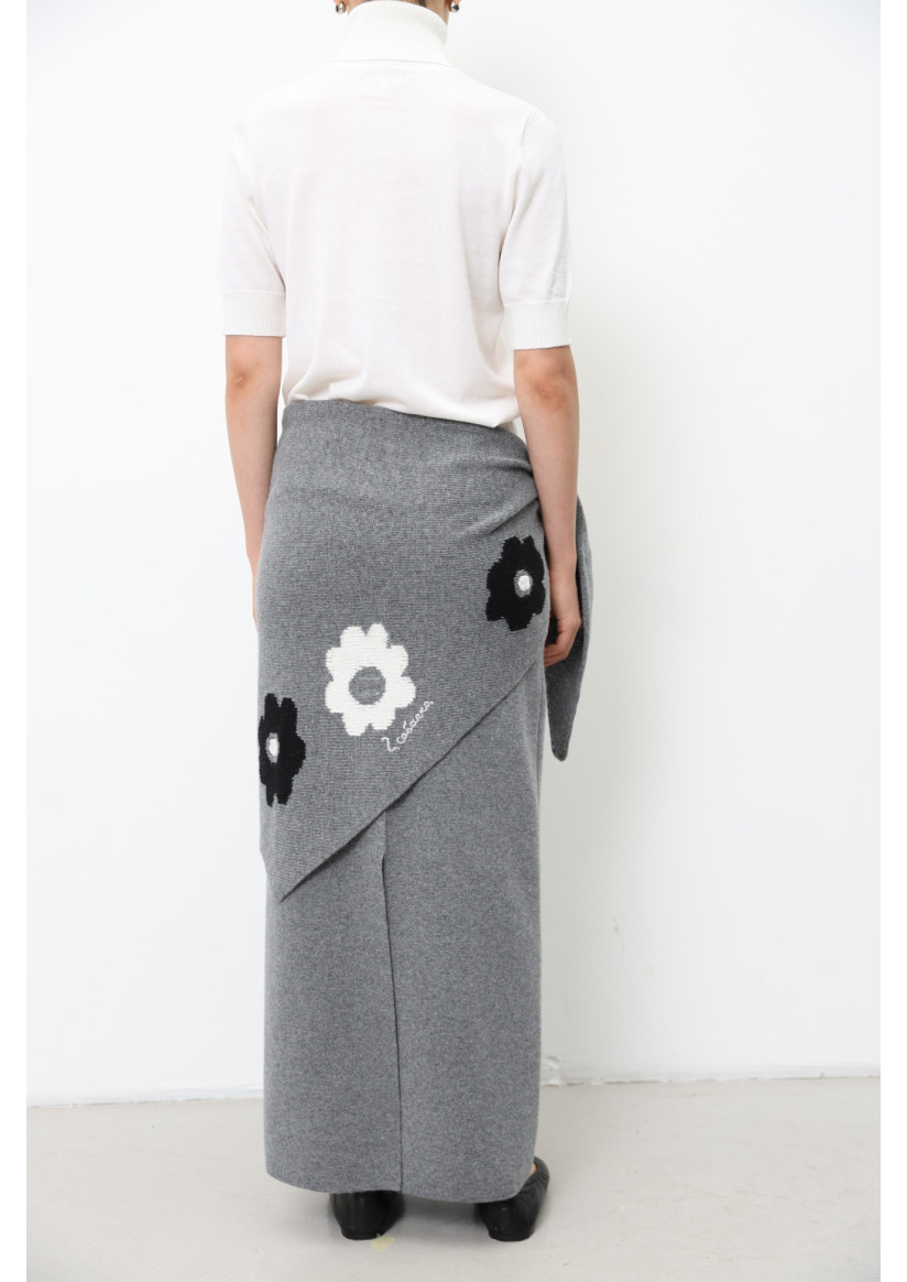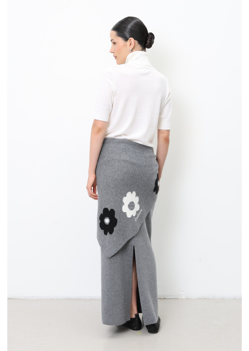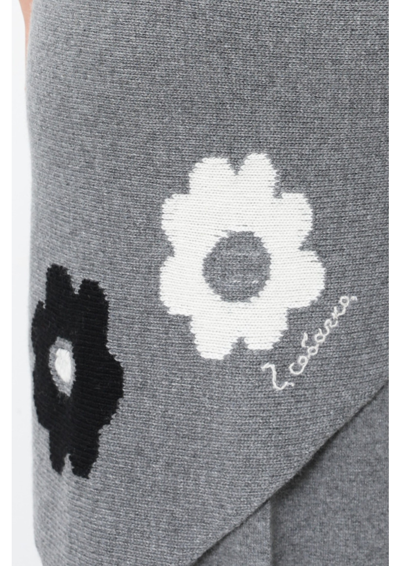 Трикутна в'язана хустка з квітами сіра