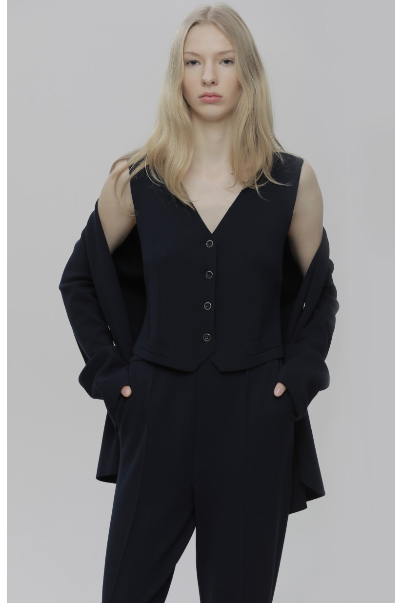 Жилетка на ґудзиках з віскози темно-синя